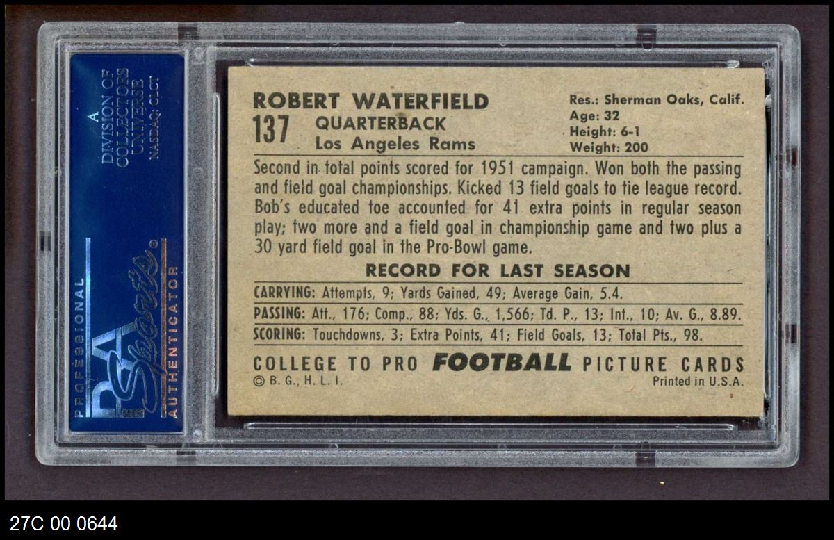 | 1952 Bowman Large #137 Bob Waterfield | PSA 5 - EX | Front | Back |