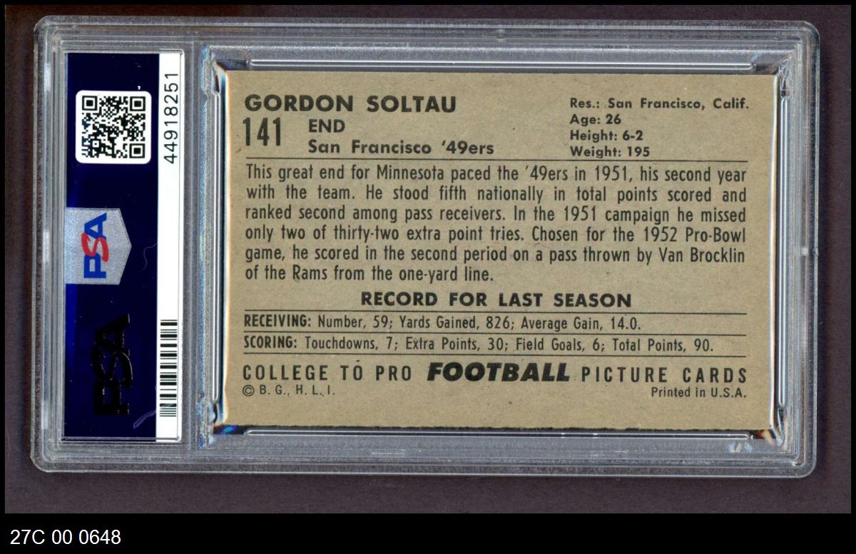 | 1952 Bowman Large #141 Gordon Soltau | PSA 5 - EX | Front | Back |