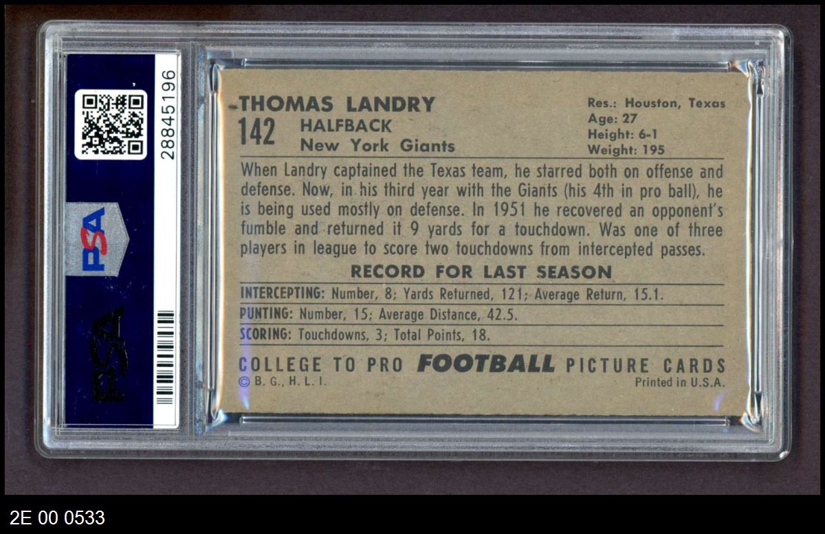 | 1952 Bowman Large #142 Tom Landry | PSA 5 - EX | Front | Back |