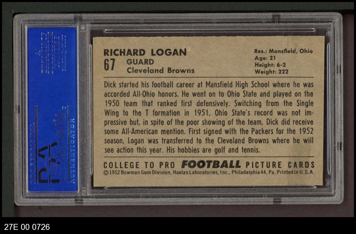 | 1952 Bowman Large #67 Richard Logan | PSA 7 - NM | Front | Back |