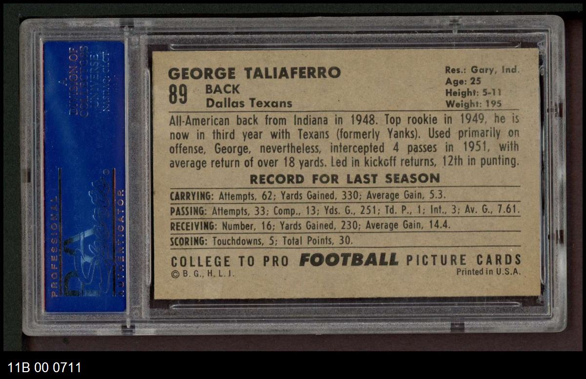 | 1952 Bowman Large #89 George Taliaferro | PSA 6 - EX/MT | Front | Back |