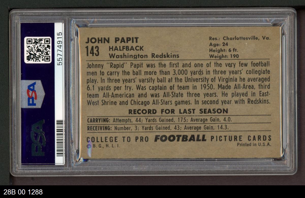 | 1952 Bowman Large #143 Johnny Papit | PSA 5 - EX | Front | Back |