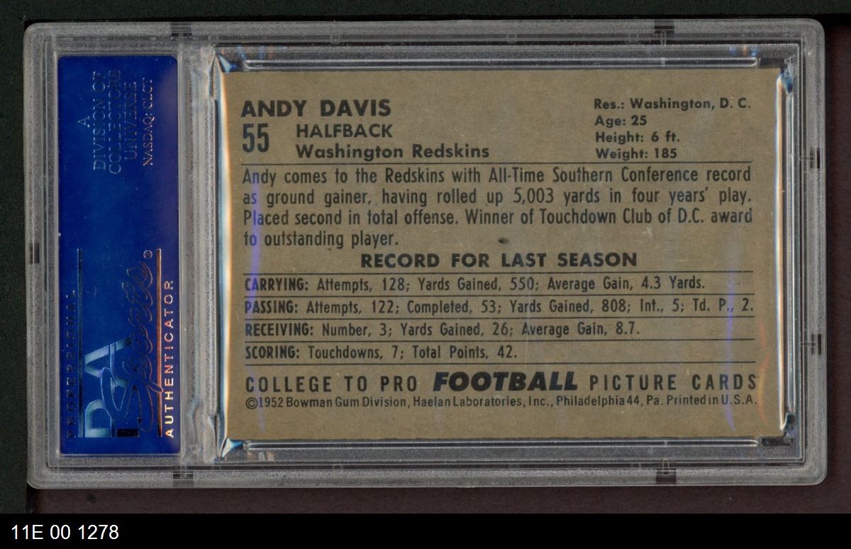 | 1952 Bowman Large #55 Andy Davis | PSA 6 - EX/MT | Front | Back |