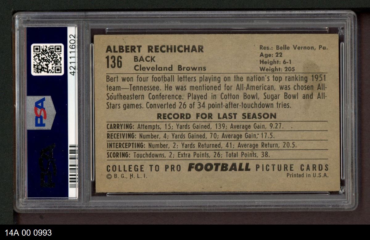 | 1952 Bowman Large #136 Bert Rechichar | PSA 4.5 - VG/EX+ | Front | Back |