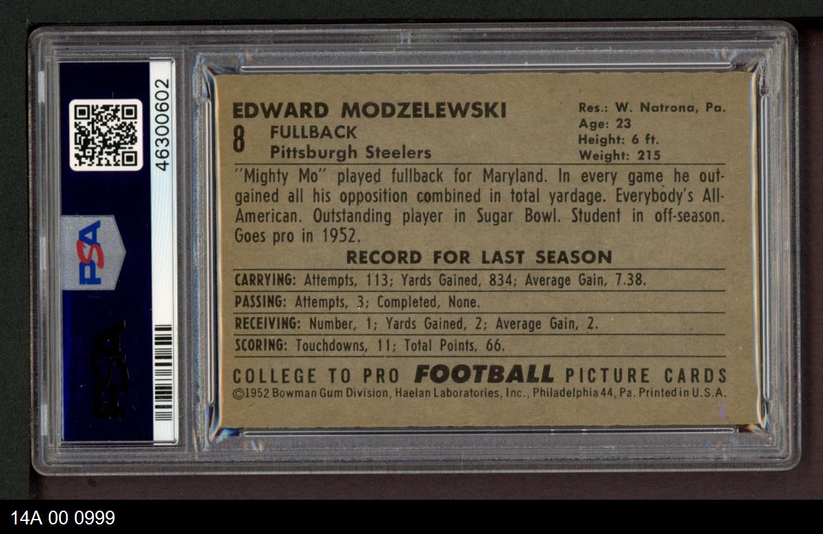 | 1952 Bowman Large #8 Ed Modzelewski | PSA 5.5 - EX+ | Front | Back |