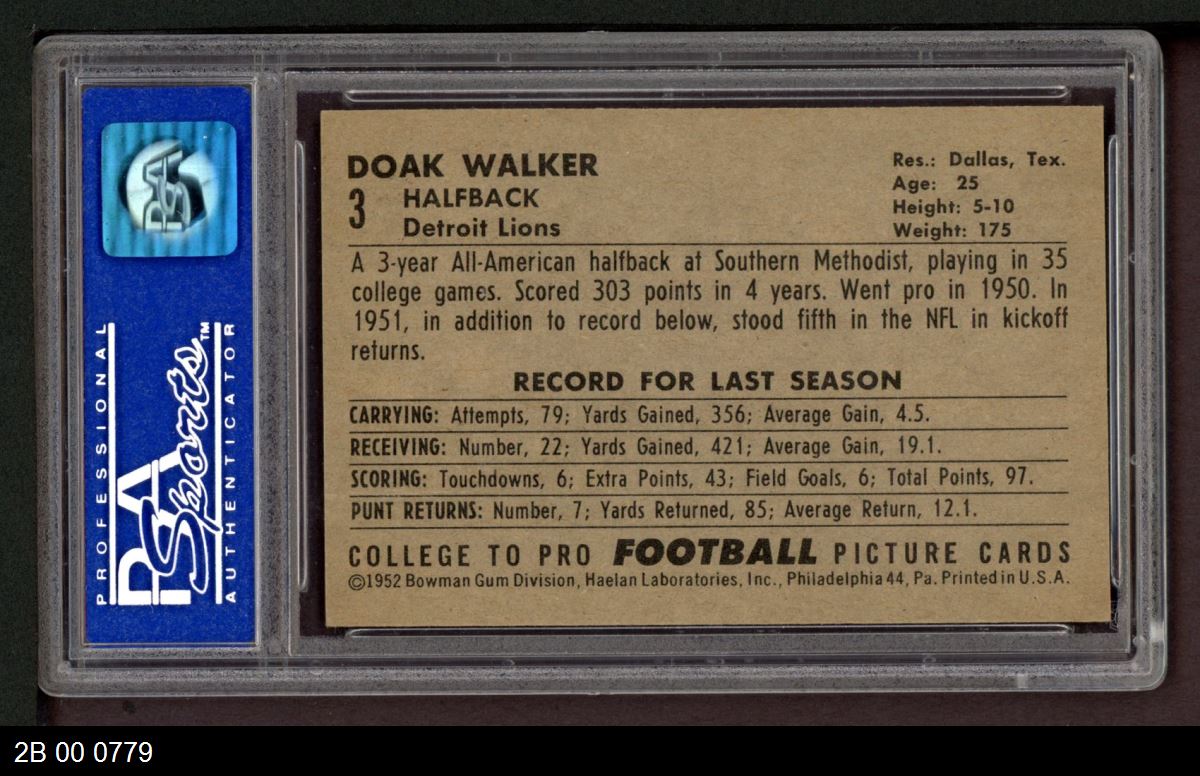 | 1952 Bowman Large #3 Doak Walker | PSA 7 - NM | Front | Back |