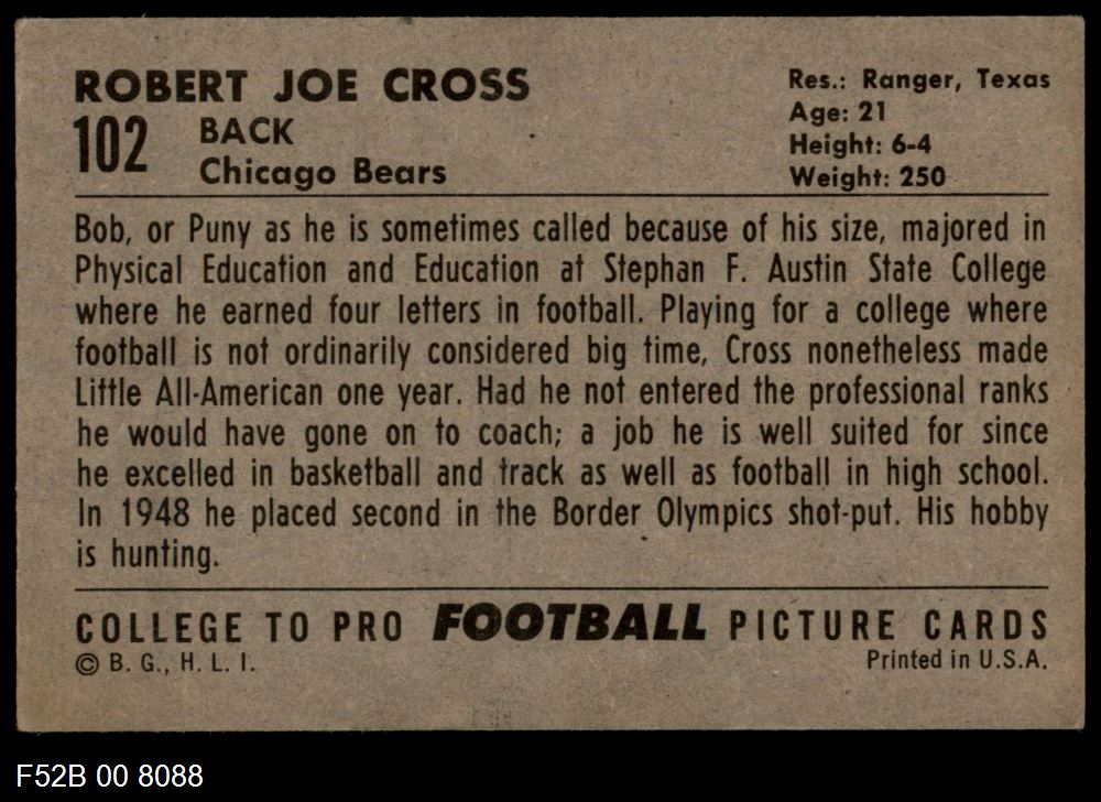 | 1952 Bowman Large #102 Robert Joe Cross | 4 - VG/EX | Front | Back |