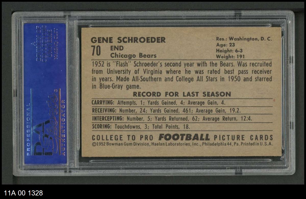 | 1952 Bowman Large #70 Gene Schroeder | PSA 6 - EX/MT | Front | Back |