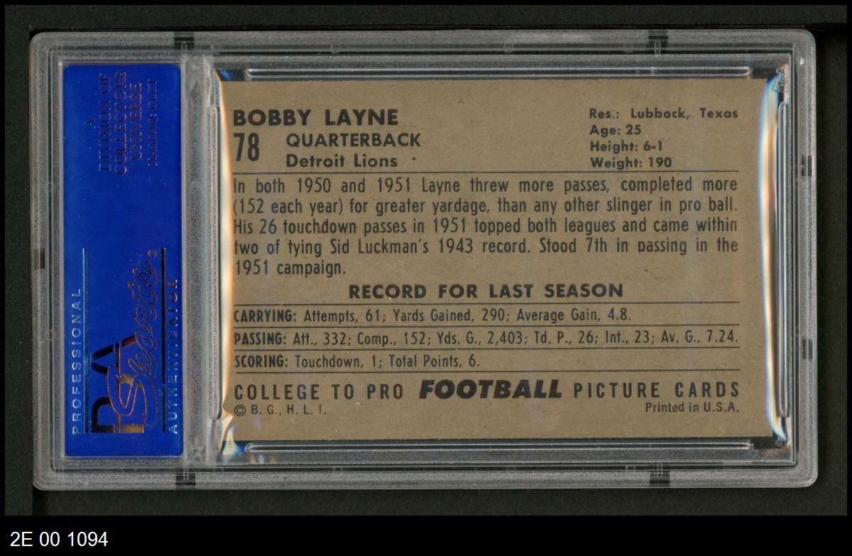 | 1952 Bowman Large #78 Bobby Layne | PSA 7 - NM | Front | Back |