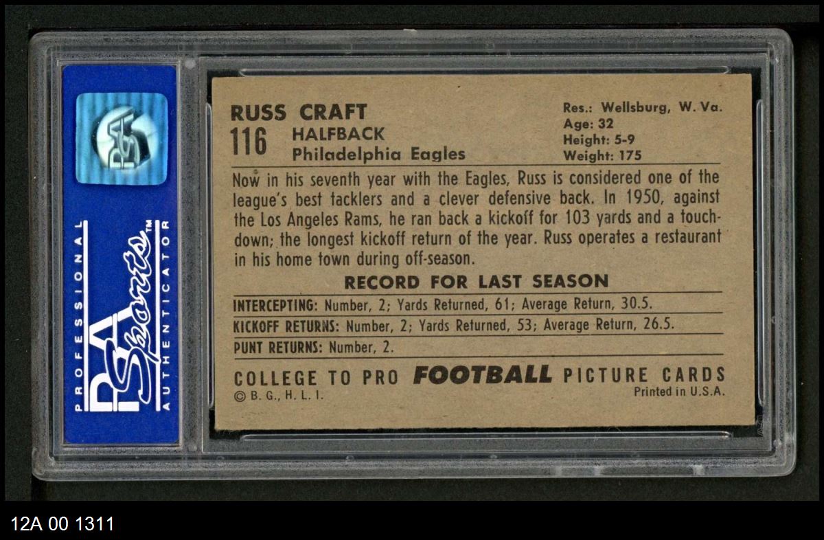 | 1952 Bowman Large #116 Russ Craft | PSA 7 - NM | Front | Back |