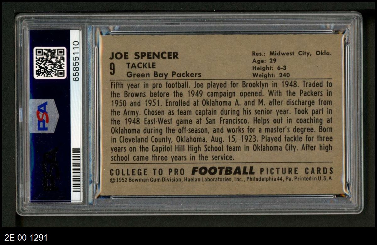 | 1952 Bowman Large #9 Joe Spencer | PSA 6 - EX/MT | Front | Back |