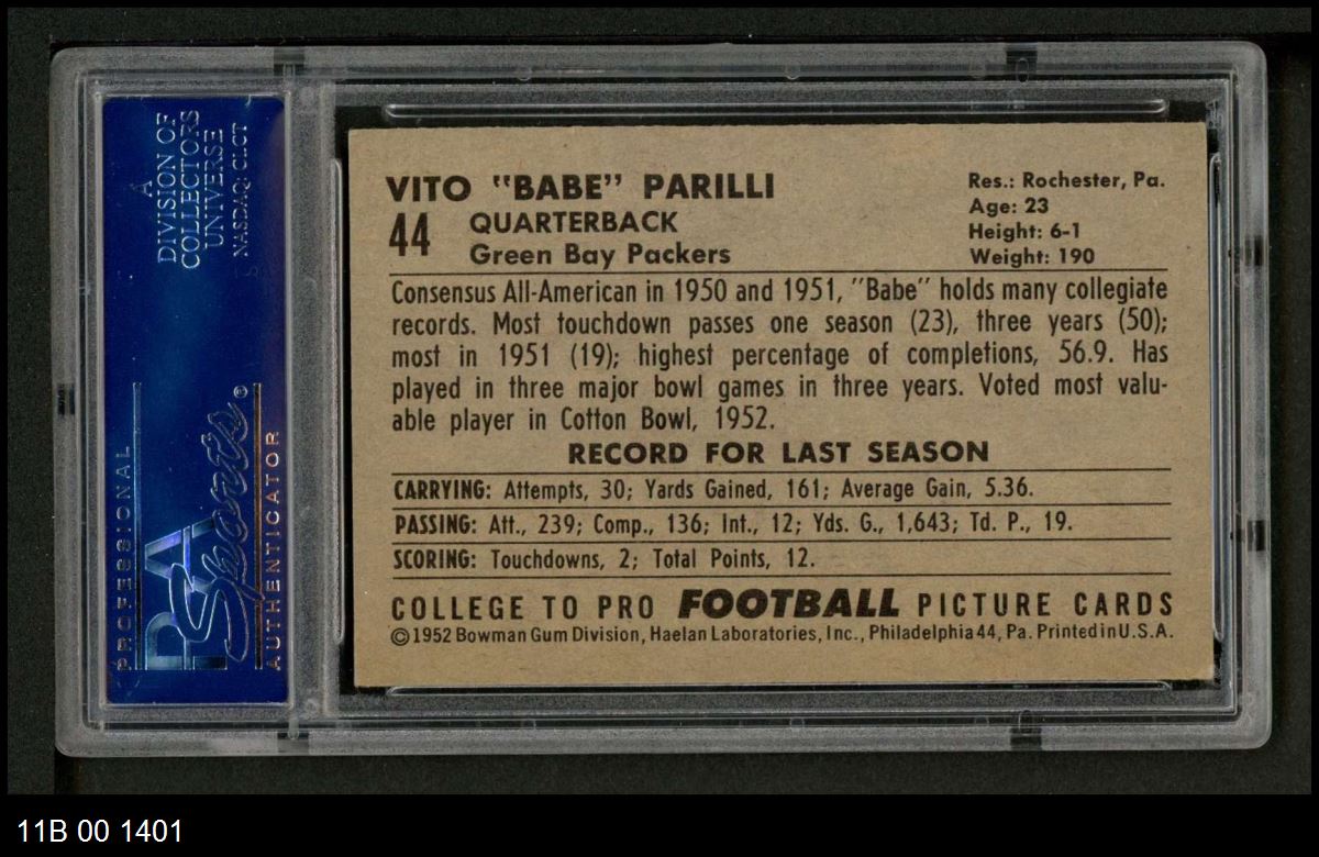 | 1952 Bowman Large #44 Babe Parilli | PSA 6 - EX/MT | Front | Back |