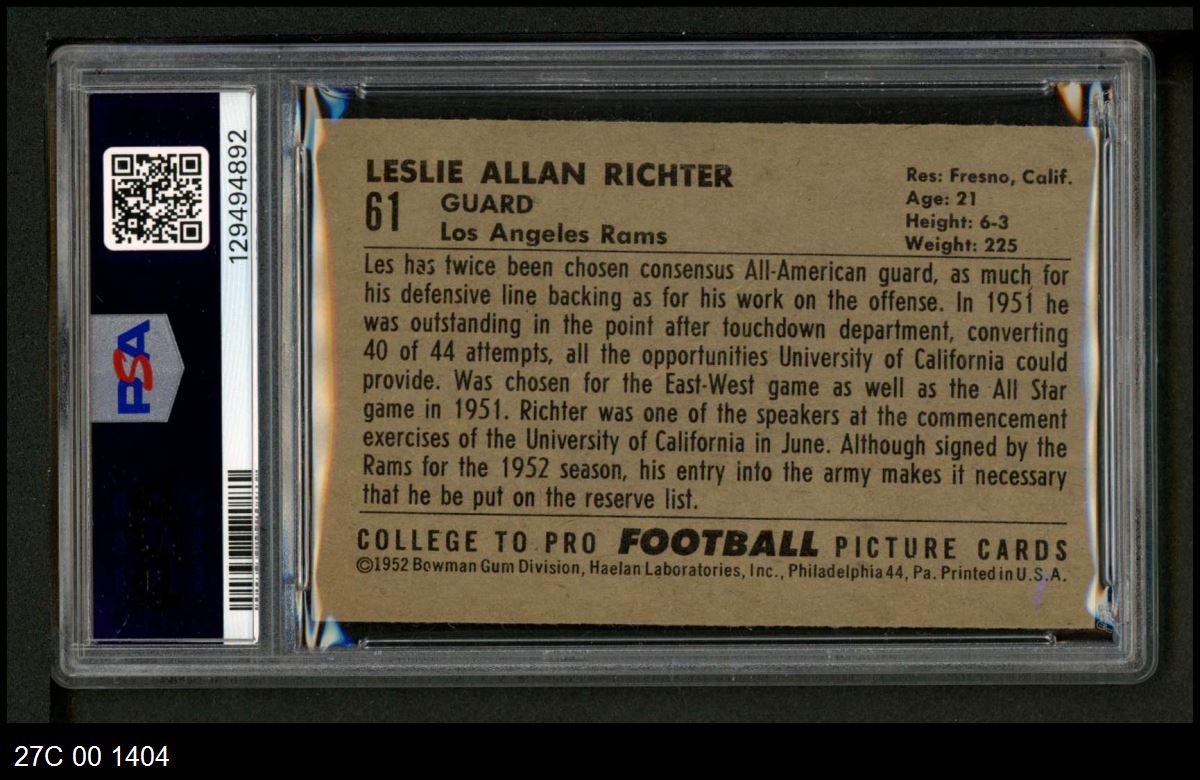 | 1952 Bowman Large #61 Les Richter | PSA 6 - EX/MT | Front | Back |