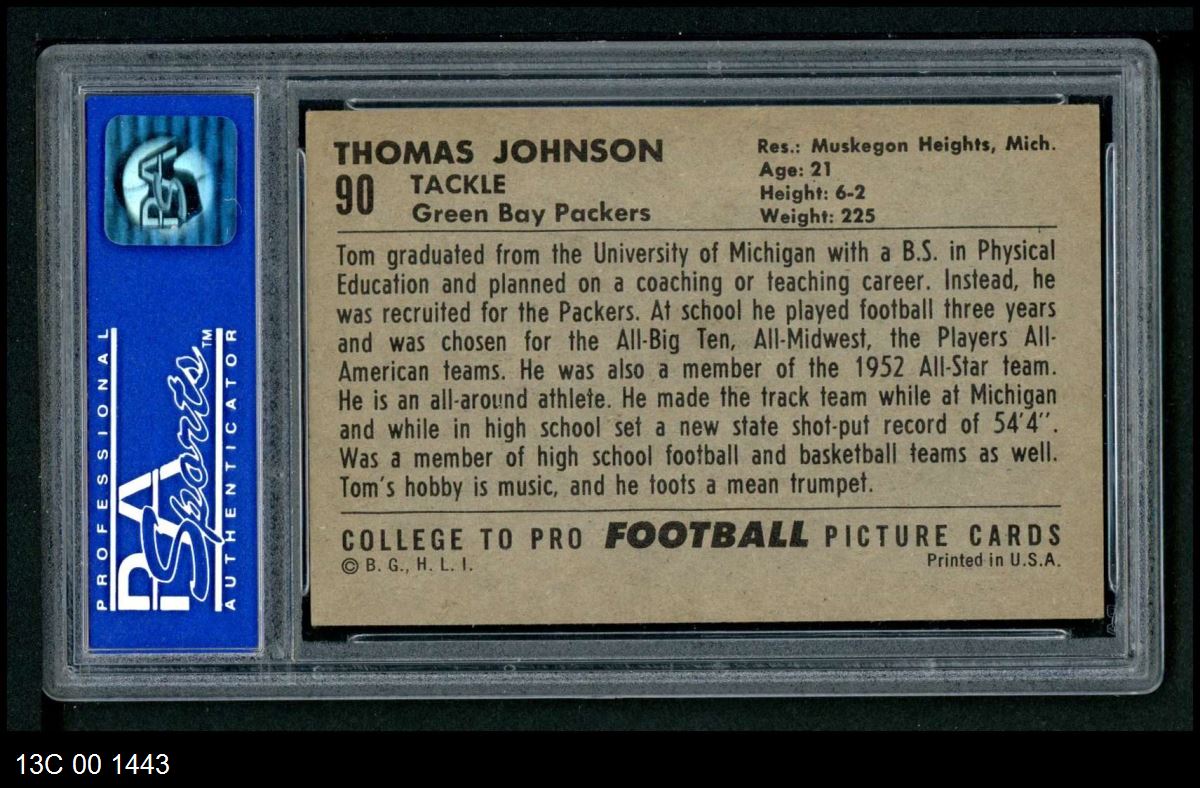 | 1952 Bowman Large #90 Thomas Johnson | PSA 6 - EX/MT | Front | Back |