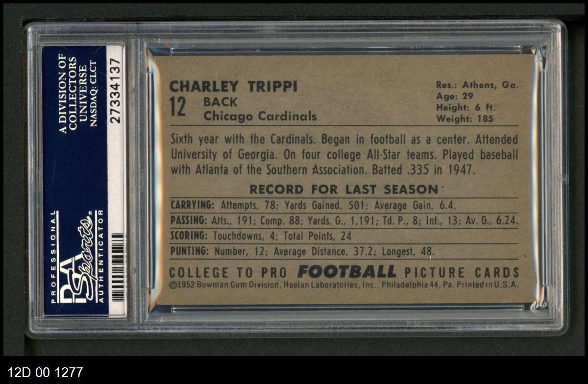 | 1952 Bowman Large #12 Charley Trippi | PSA 6 - EX/MT | Front | Back |