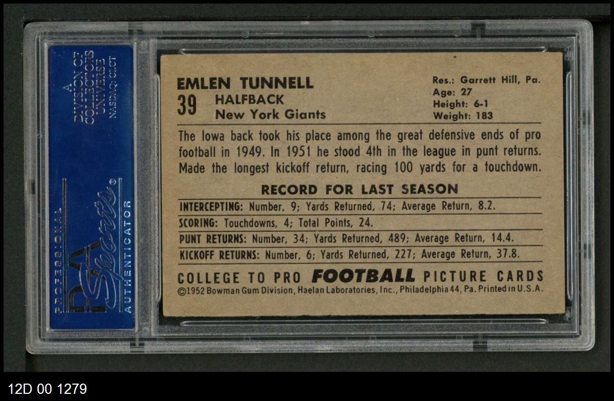 | 1952 Bowman Large #39 Emlen Tunnel | PSA 6 - EX/MT | Front | Back |