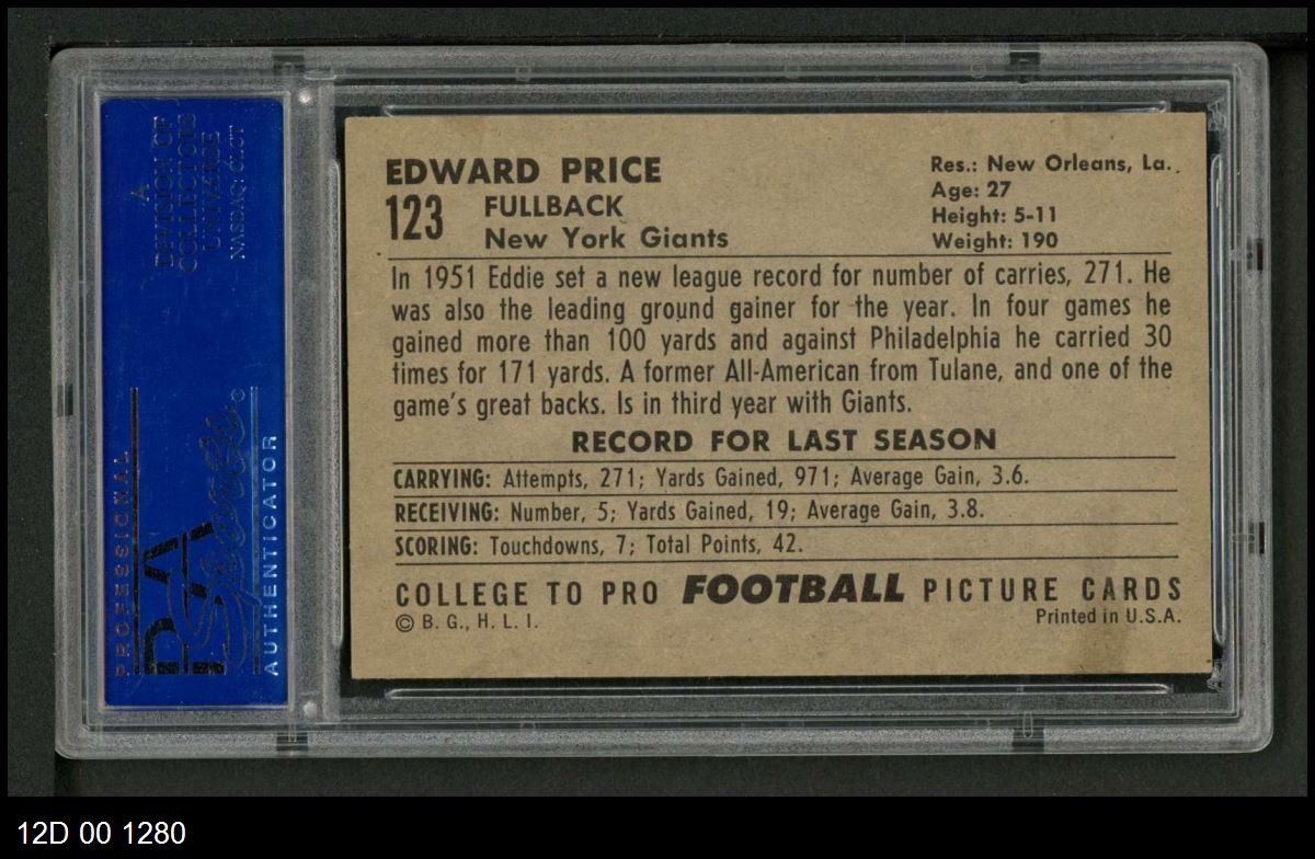 | 1952 Bowman Large #123 Eddie Price | PSA 7 - NM | Front | Back |