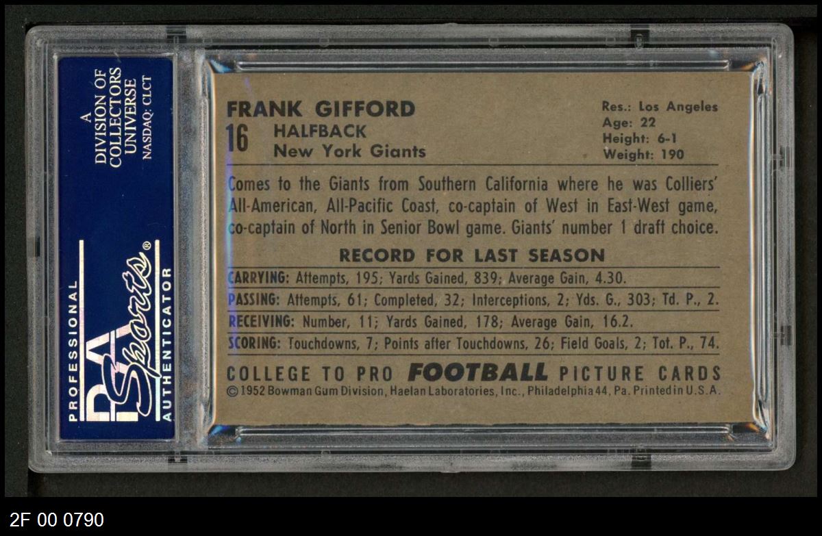 | 1952 Bowman Large #16 Frank Gifford | PSA 5 - EX | Front | Back |