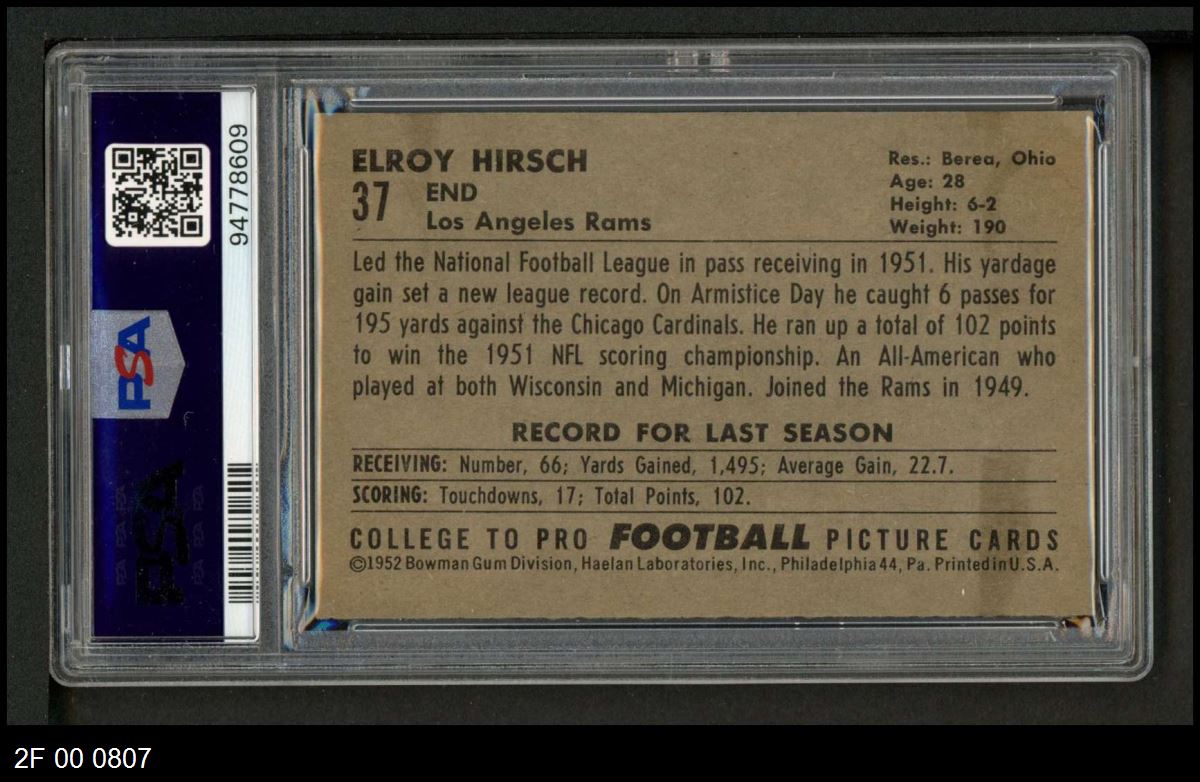 | 1952 Bowman Large #37 Elroy Hirsch | PSA 6 - EX/MT | Front | Back |