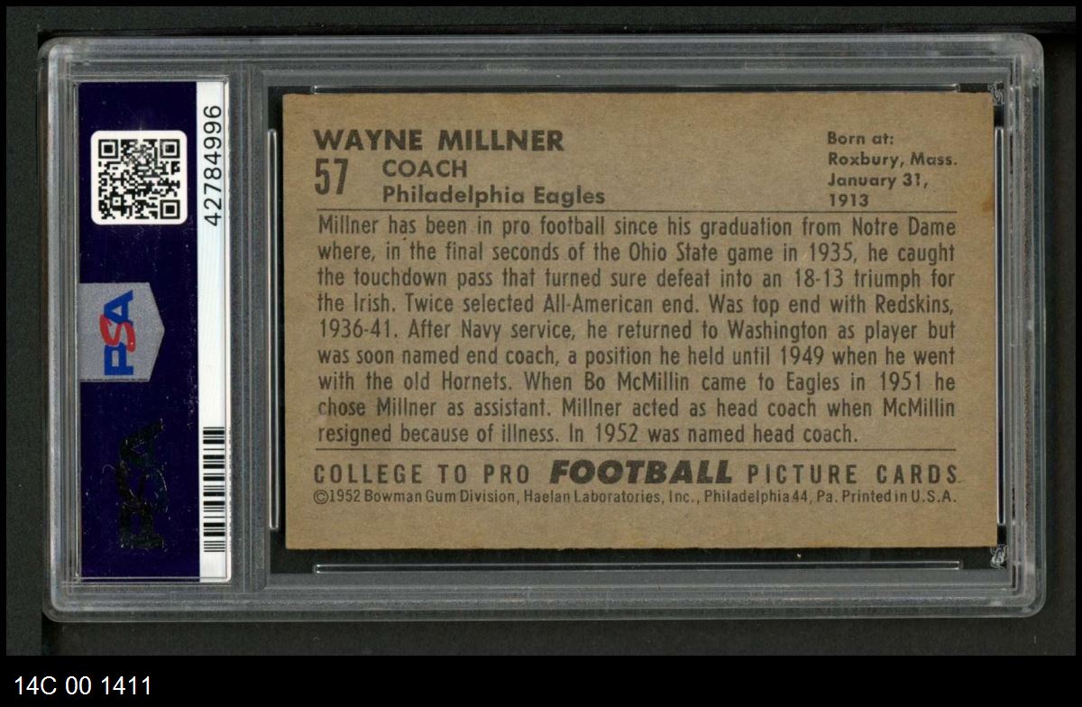 | 1952 Bowman Large #57 Wayne Millner | PSA 5 - EX | Front | Back |
