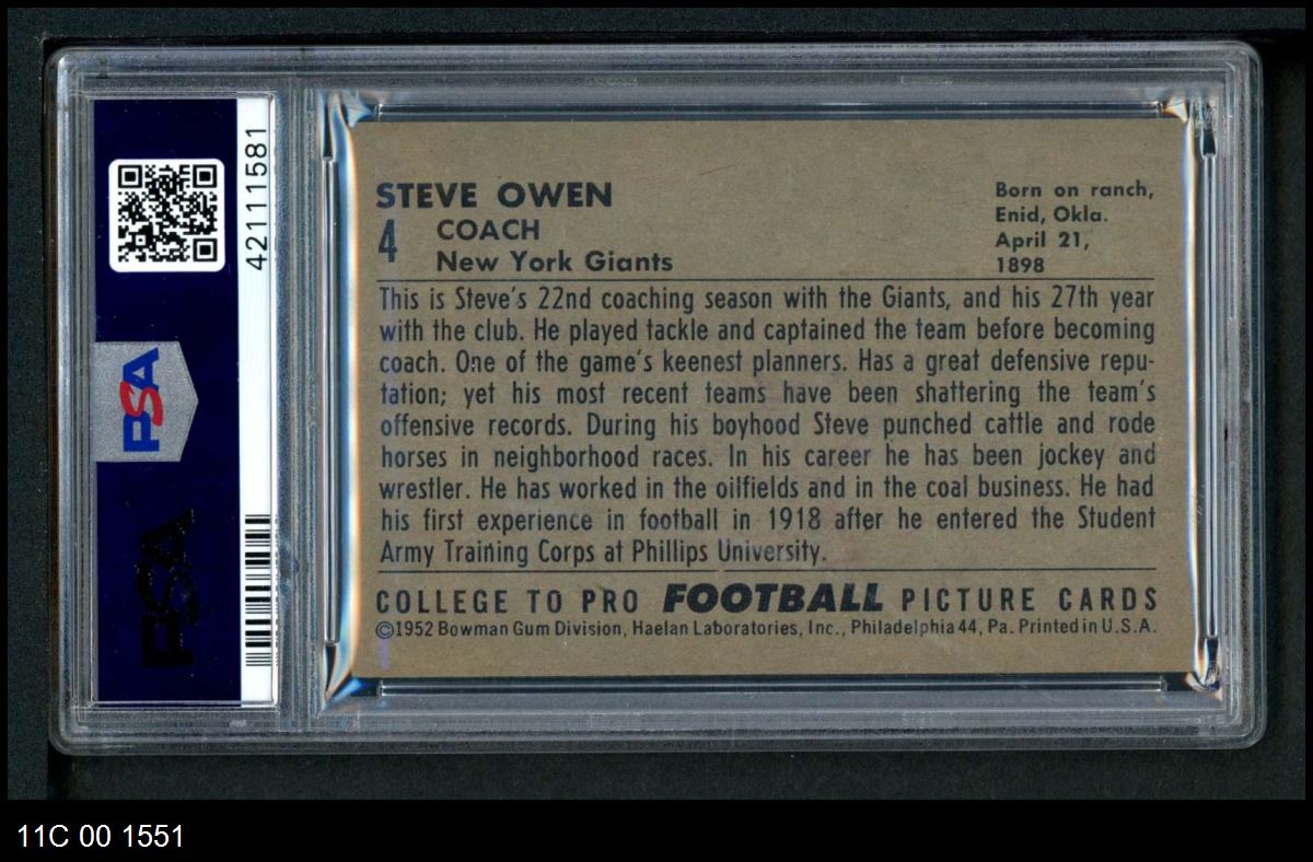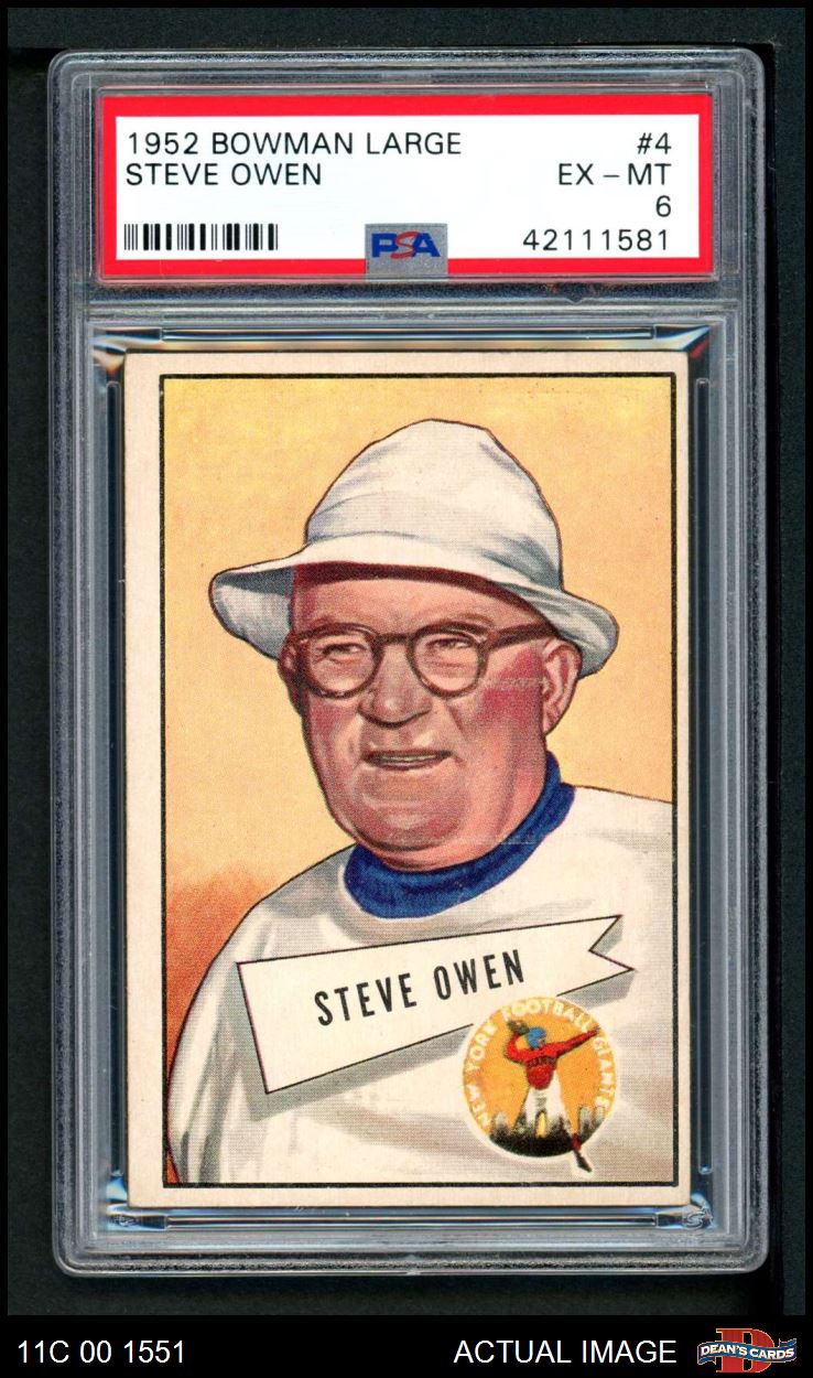 | 1952 Bowman Large #4 Steve Owen | PSA 6 - EX/MT | Front | Back |