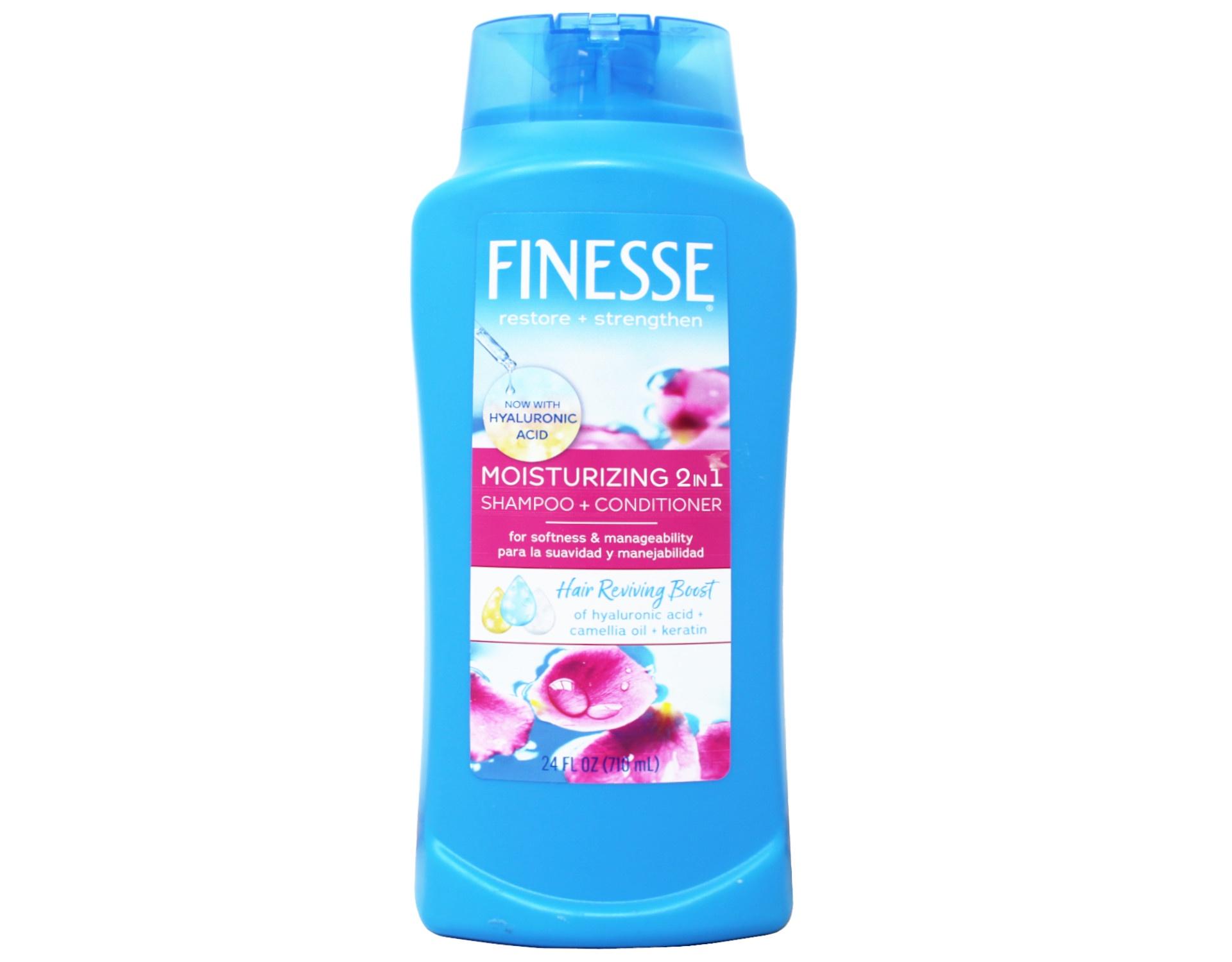 Get hair that’s healthier, stronger, and more alive with Finesse. Finesse Restore + Strengthen Moisturizing 2in1 Shampoo + Conditioner leaves dry, damaged, and stubborn hair feeling silky soft and more moisturized. For a simple, one-step haircare process for stronger, more manageable hair. This Finesse 2in1 shampoo + conditioner features a hair reviving boost of camellia oil (rich in Omega-9 fatty acids, vitamins, and antioxidants) plus active proteins - soy, silk, and keratin, the building block of hair. The active proteins penetrate deep into the hair shaft for stronger, healthier hair. Finesse products help transform hair so it looks and feels more alive, while leaving it smelling fresh and clean with our delightful, signature fresh scent. Gender-neutral fragrance appeals to both women and men. REJUVENATE DRY OR DAMAGED HAIR: Finesse Restore + Strengthen Moisturizing 2in1 Shampoo + Conditioner leaves dry, damaged, and stubborn hair feeling silky soft and more moisturized. For a simple, one-step haircare process for stronger, more manageable hair.