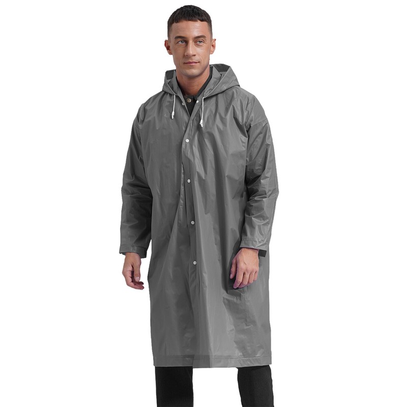 Drawstring hood and knee length provide complete protection in bad rainy windy weather. Thicken EVA raincoat is not disposable.
