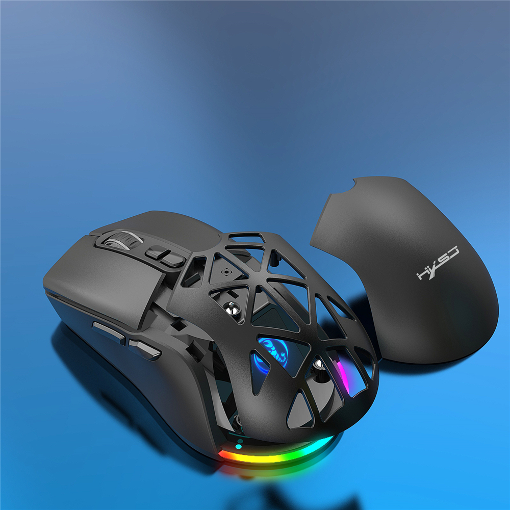T26 Dual-mode Wireless Mouse 2.4G BT5.1 RGB Backlight 4800DPI 650MAH Rechargeable Battery Hollow Out Design Office Game Mice