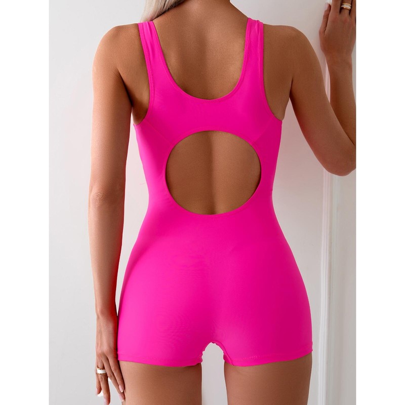 An athletic swimsuit for women, designed with scoop neck, sleeveless, hollow back and boyleg.