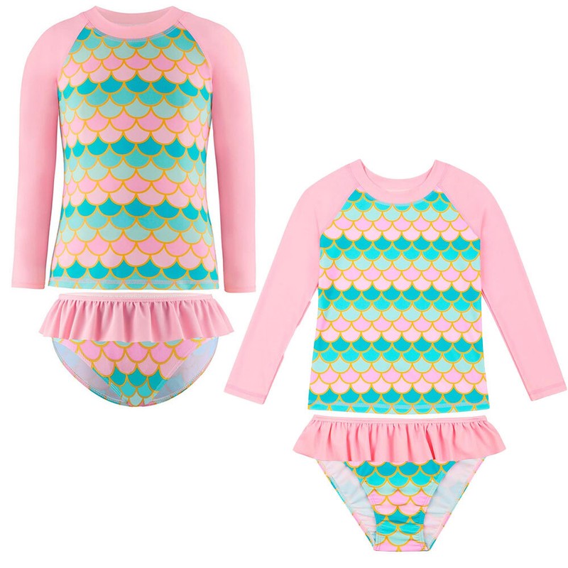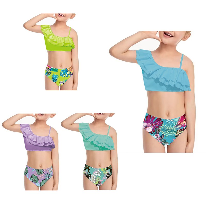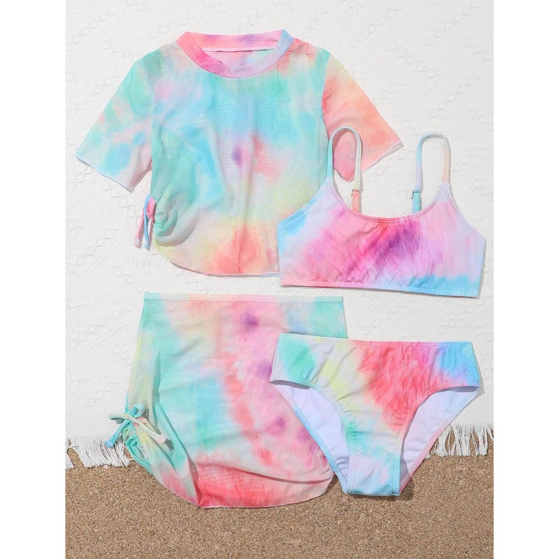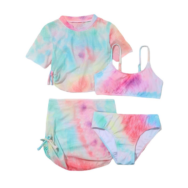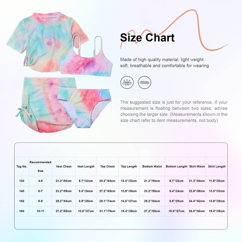 Set Include: 1Pc Girl Swim Top, 1Pc Swim Bottom, 1Pc Cover Up Top. 1Pc Cover Up Skirt