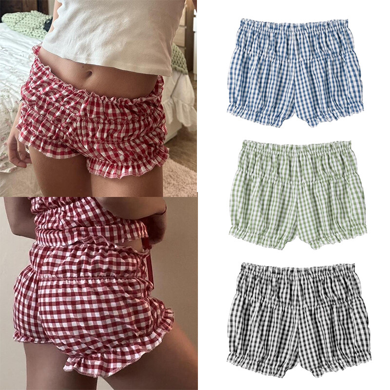 Elastic waistband shorts, boy-cut design. Slim fit, nice seam.