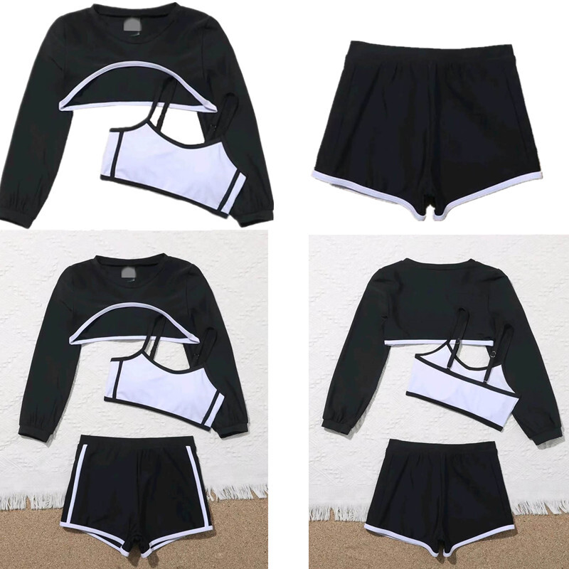 Includes a swim tank top, a swim bottom, a cover up top and a beach skirt, convenient for girl.