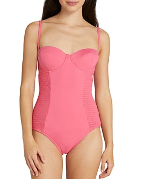 Smocked sides lend a flattering finish to kate spade new york's one-piece swimsuit, featuring underwire for added support.