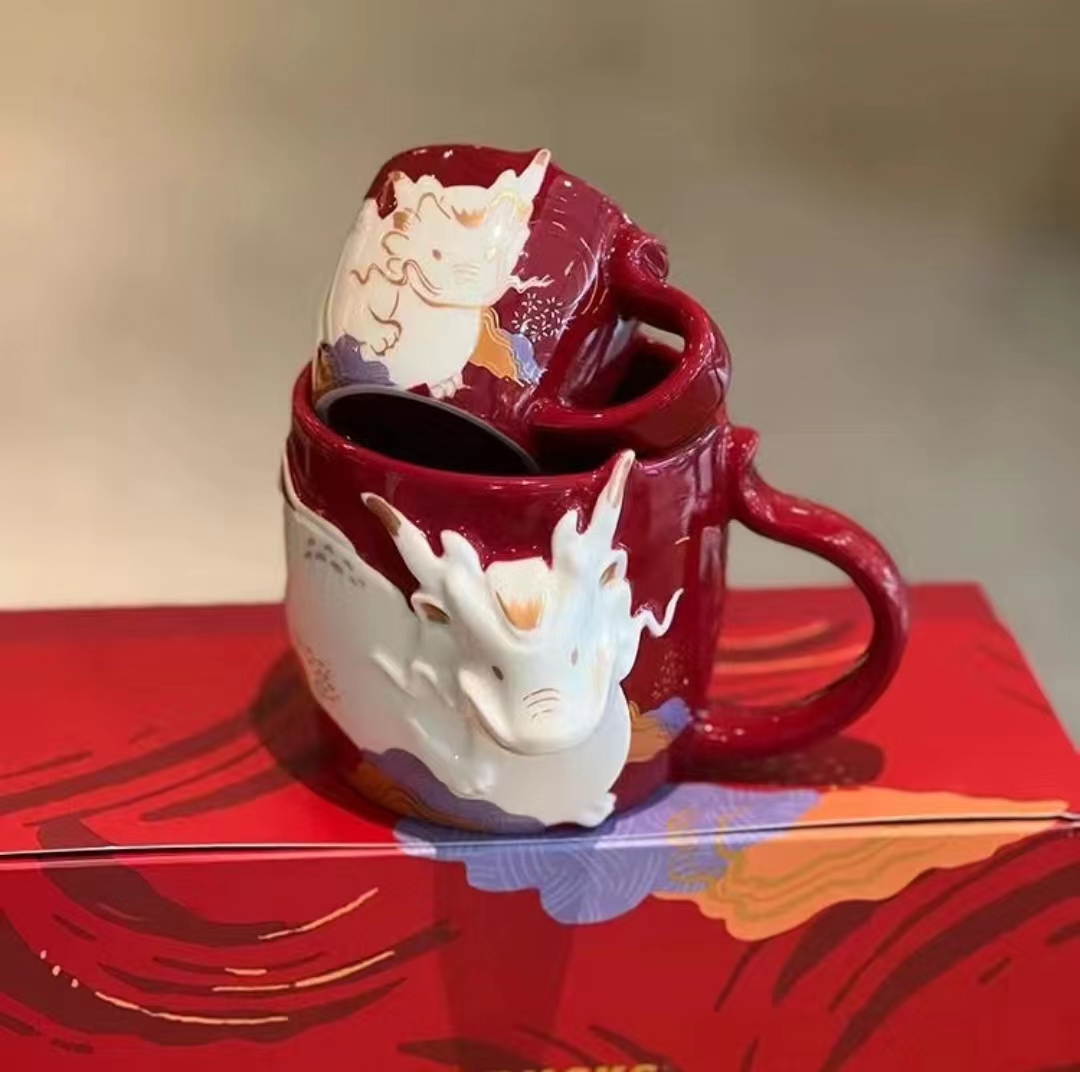 Starbucks 2024 Year of the Dragon Classic Dragon Embossed Ceramic Mug Gift Set