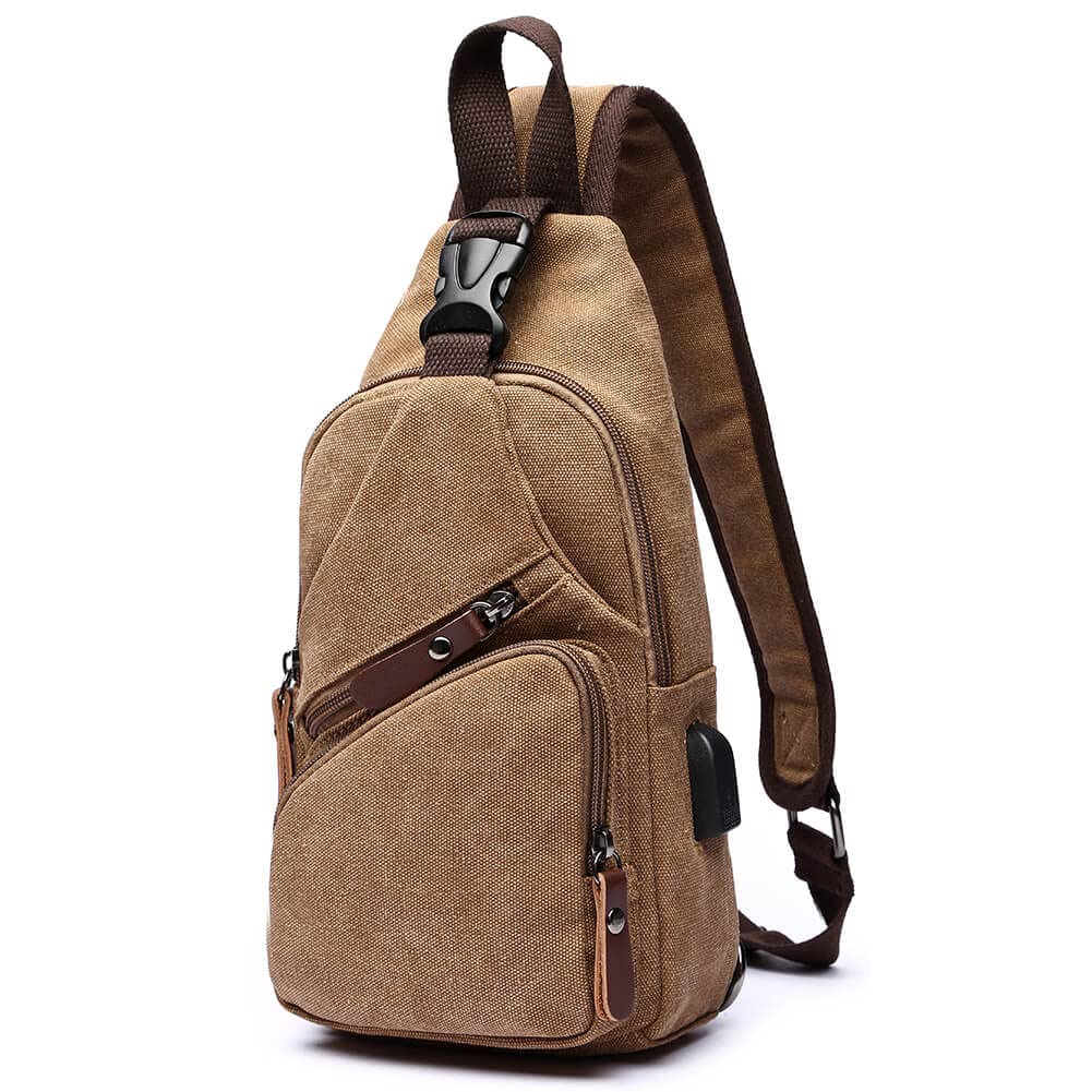 Canvas Sling Bag Crossbody Backpack Shoulder Casual Rucksack for Men Women Outdoor Cycling Hiking Travel Fishing Coffee