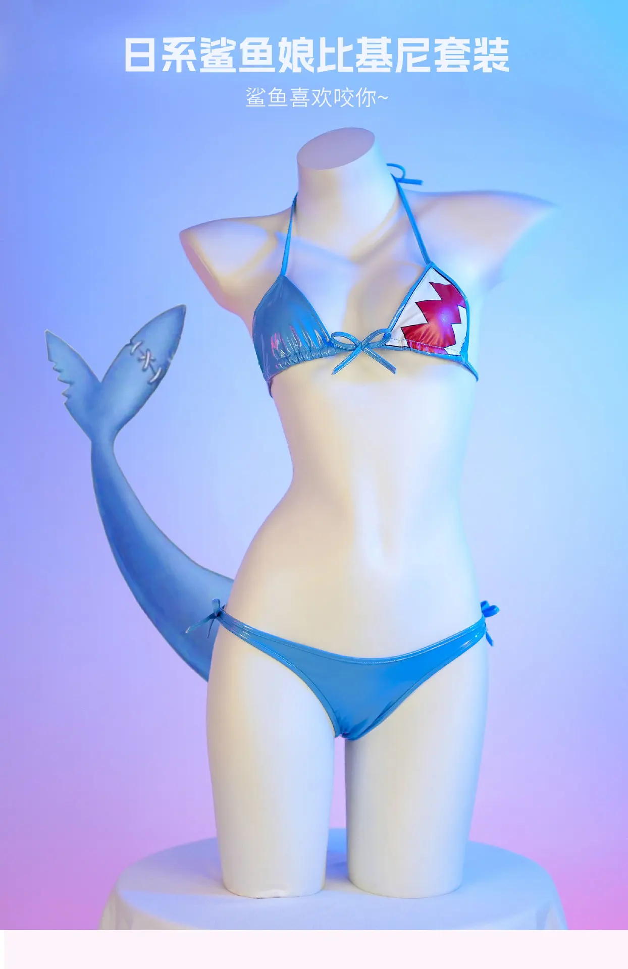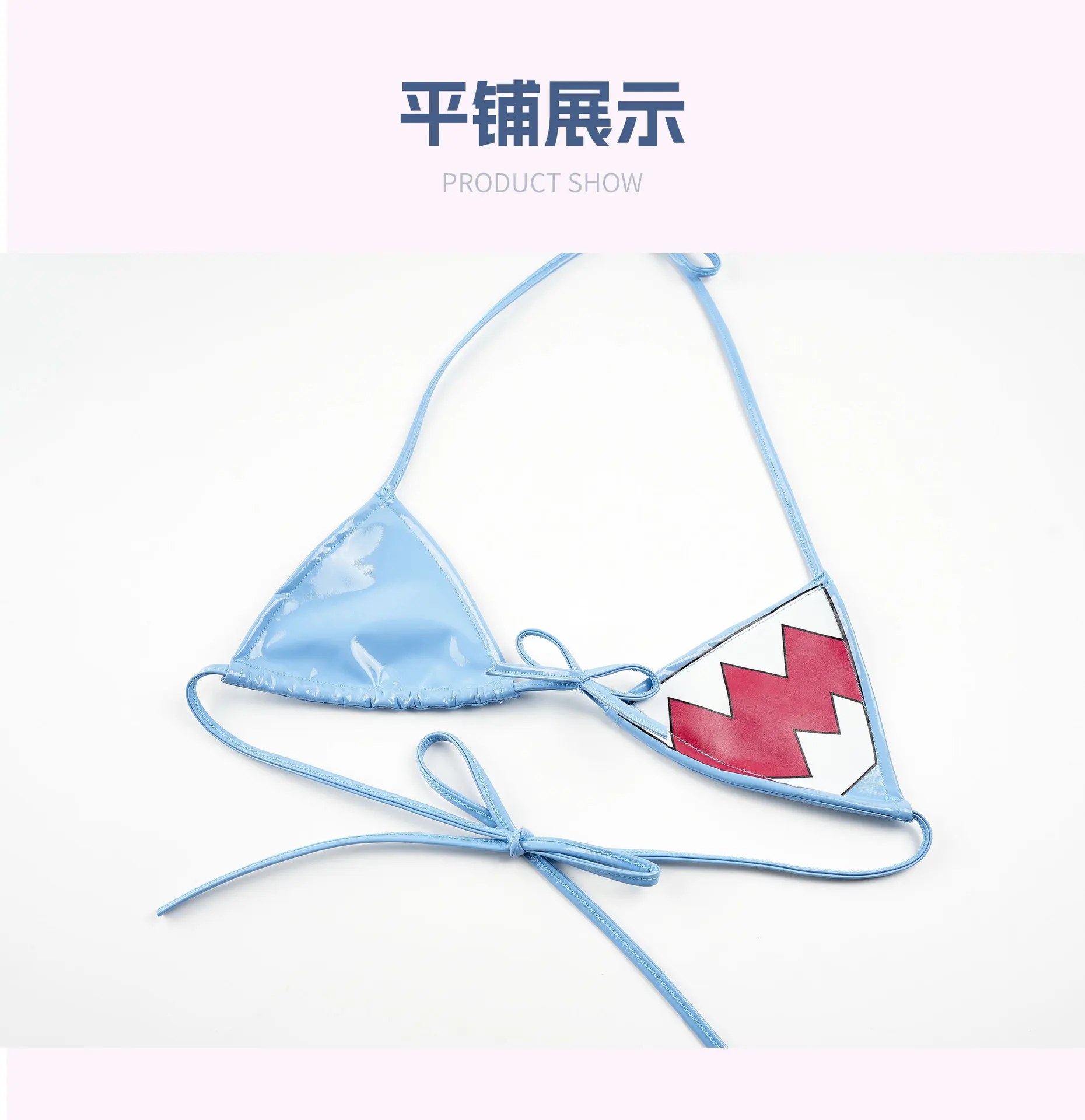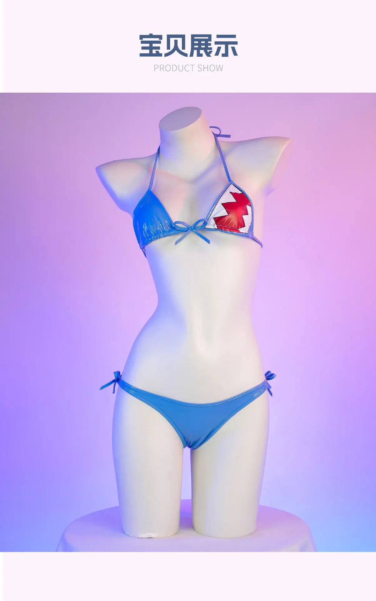 Gawr Gura Shark Girl Adjustable Bra & Panties Bikini Set PU Shiny Underwear Blue