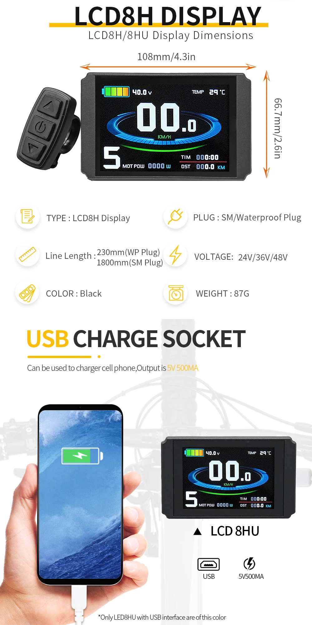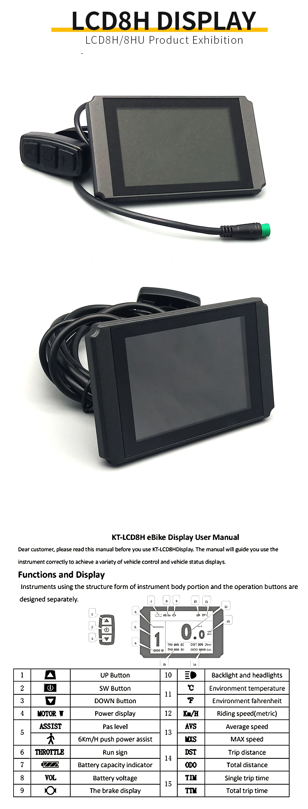 KT-LCD8H display is KT series controller electric bicycle LCD display. Only applicable to KT series controllers. It does not apply to other controllers.
