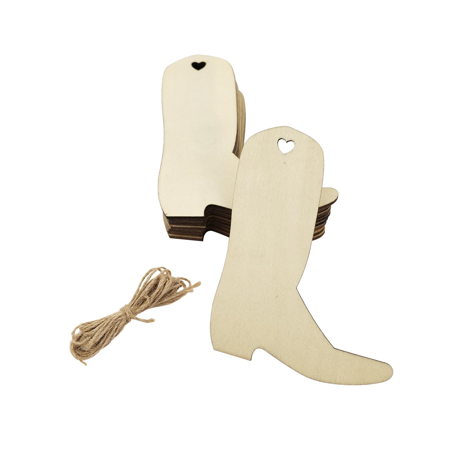 Unfinished wooden Cowboy Boots cutouts are ideal for hangers, card making, embellishments, scrap booking, decoupage, sign making and many other art and craft projects. Perfect decoration for home, office, restaurant, party, wedding, dances, bar, club, cafe shop, store door and window. Specifications: : Wooden Cowboy Boots Crafts Material: Natural Wood Size: 3.9 inches Thickness: 0.12 inches Package includes: 32 x Unfinished Wooden Cowboy Boots Cutouts Crafts 1 x Rope