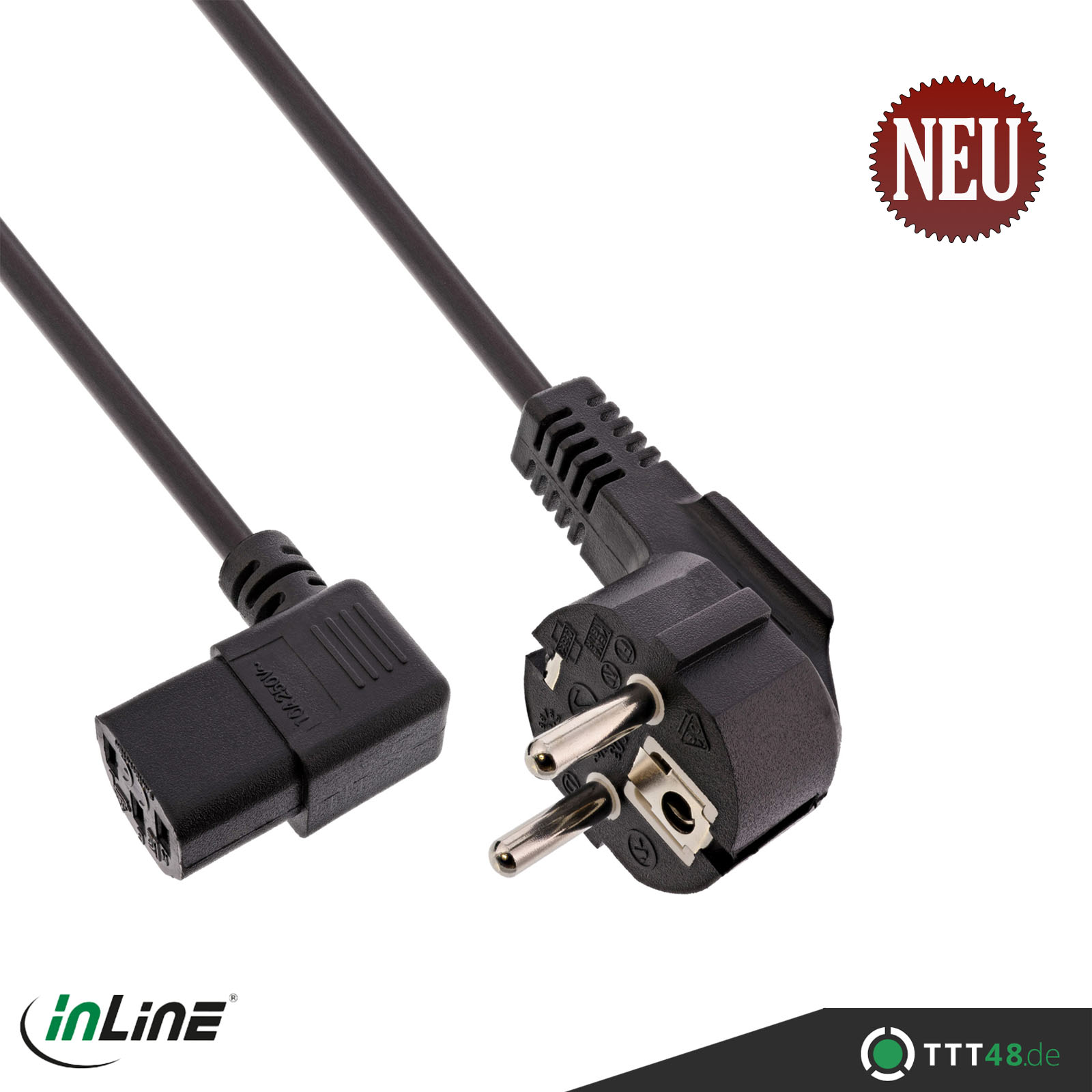 InLine® Netzkabel, Schutzk. gew. / Kaltgerätest. C13 links abgew., schwarz, 1m