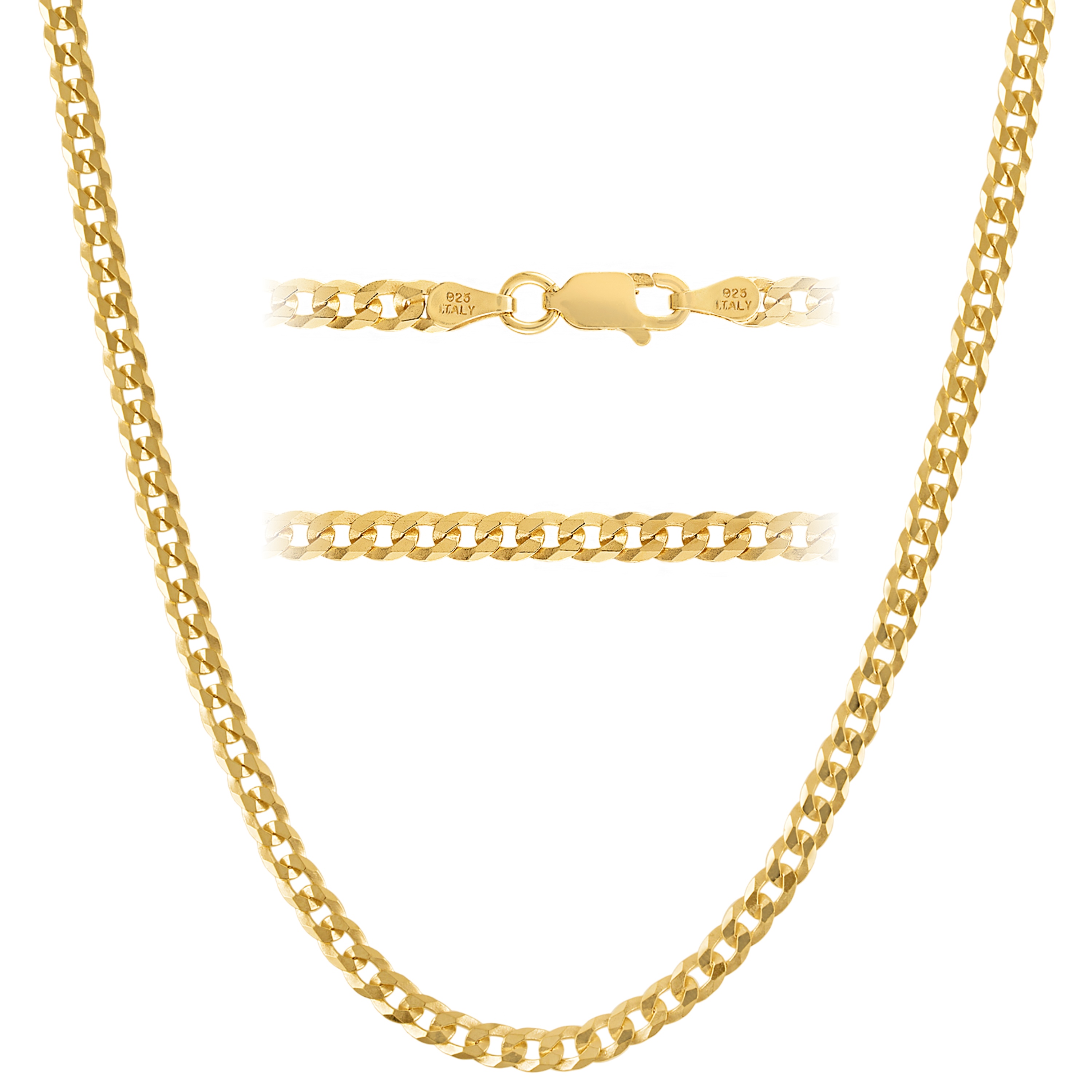 Enhance your wardrobe with the sophistication of the KISPER 18K Gold Over 925 Sterling Silver Italian 3.5mm Solid Diamond-Cut Cuban Link Curb Chain Necklace. Featuring flat diamond-cut links that exude a rich shine, this necklace adds a modern edge to any outfit. Slim yet durable at 3.5mm, it's ideal for daily wear, whether worn solo for a polished look or layered for a fashion-forward statement. Crafted from 92.5% pure sterling silver and plated with a thick layer of 18K yellow gold, this necklace is hypoallergenic and suitable for sensitive skin. Made in Italy with superior craftsmanship, it reflects a tradition of excellence in design and quality, making it a timeless investment piece for any wardrobe.
