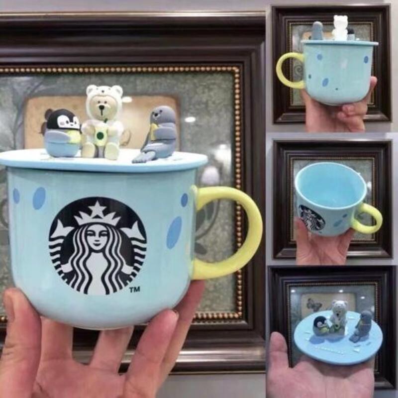 2024 Starbucks Japanese Ocean Blue Bear Coffee Mug and Animal Silicone Lid Mug