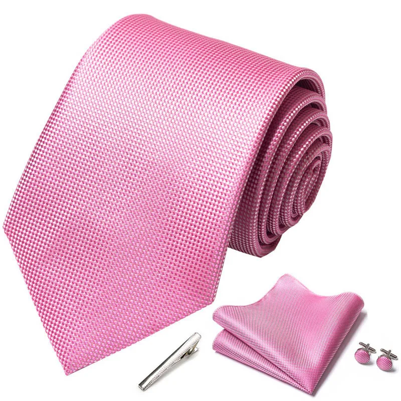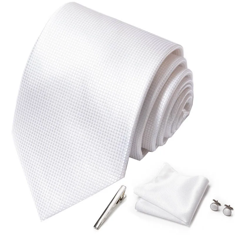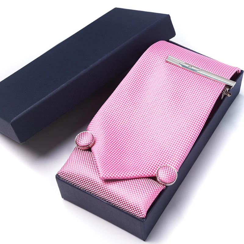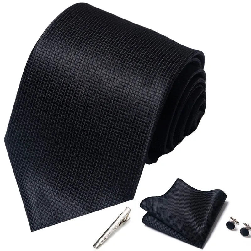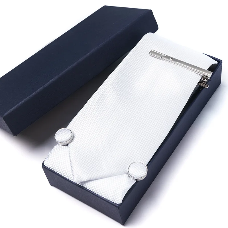Plaid Mens Necktie Gift Box Ties Pocket Square Cufflinks And Tie Clip Suits For Party Wedding Navy Blue Black White Corbata Set
