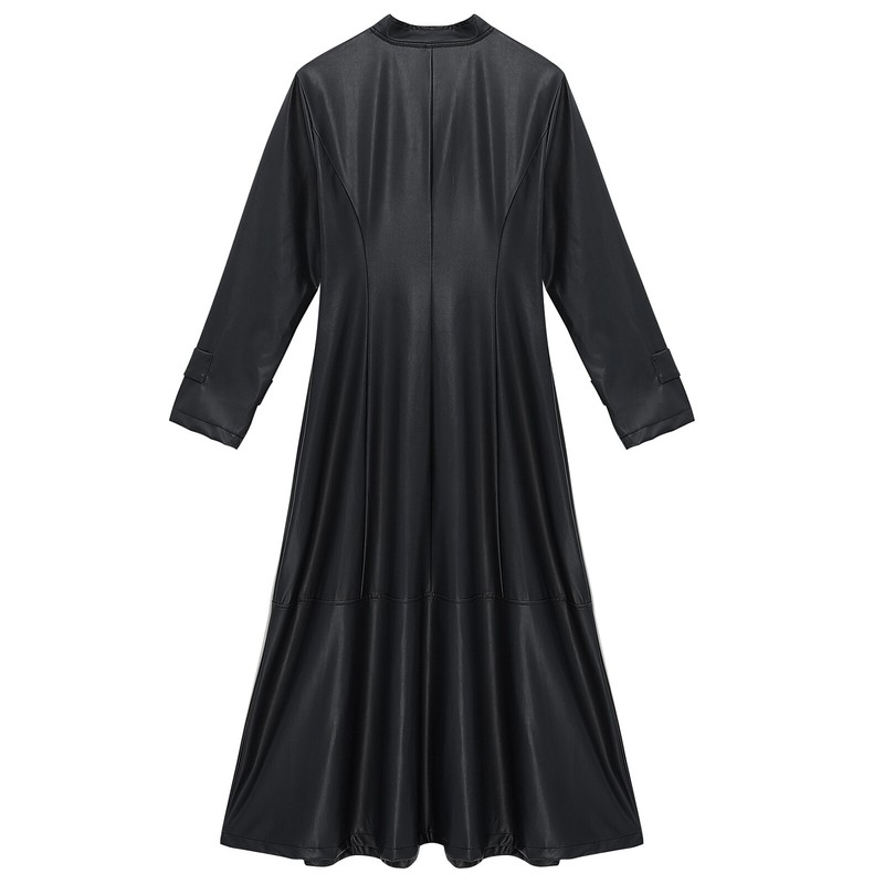 Designed with long sleeve, stand collar, slim waist, matte PU leather and ankle length, this trench coat makes you superbly cool.