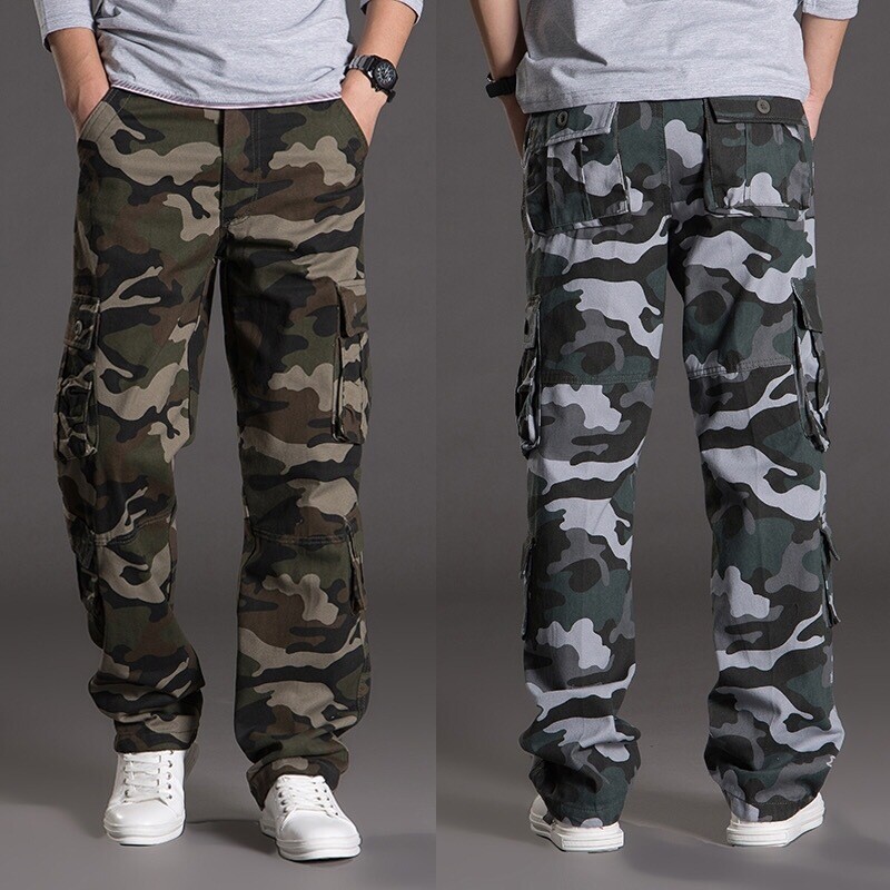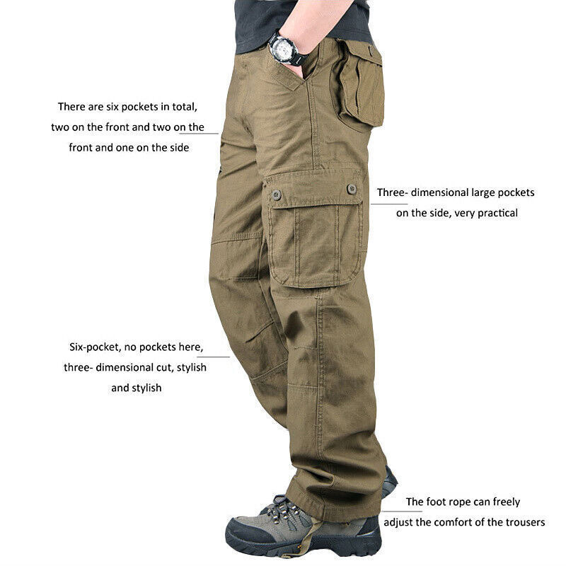 pockets, 2 thigh pockets, shins pockets, and have drawstring on the leg