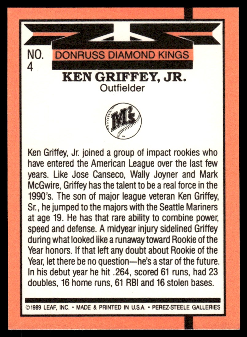| 1990 Donruss Super Diamond Kings Ken Griffey Jr. Seattle Mariners #4 |