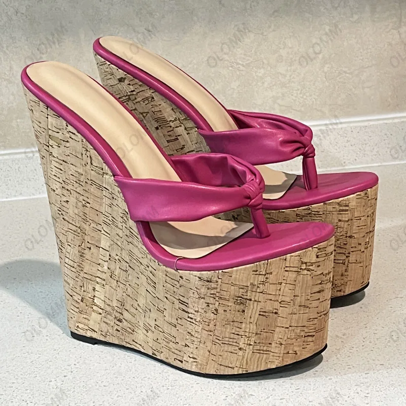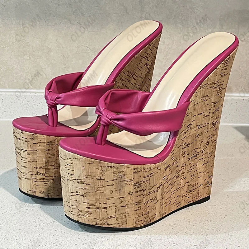 Olomm Handmade Women Platform Mules Sandals Slippers Wedges Heels Round Toe Pretty Sky Blue Party Shoes US Plus Size 5-15