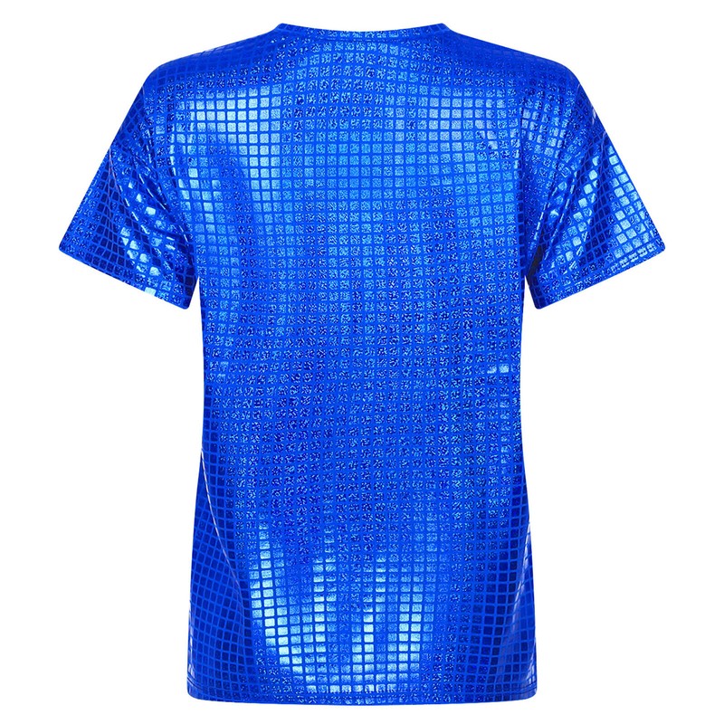 Women’s short sleeve T-shirt is designed with shiny plaid sequins makes you eye-catching in the crowd.