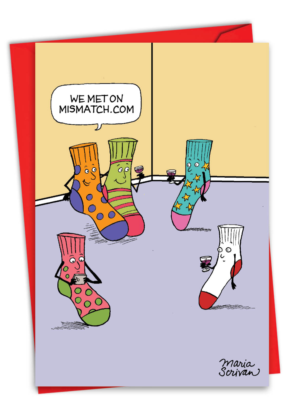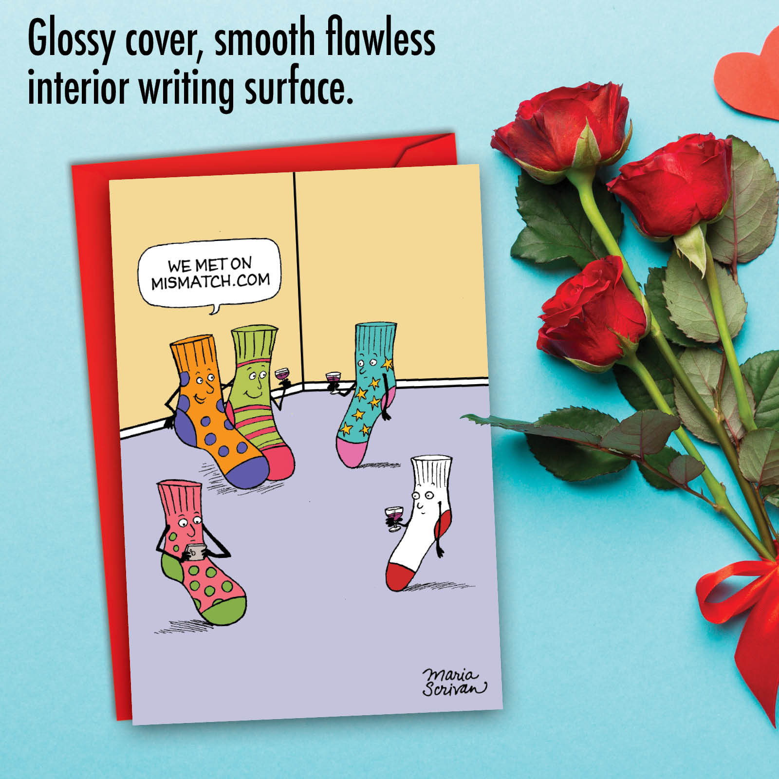 This funny Valentine’s Day card features hilarious art and humor from cartoonist Maria Scrivan. It’s ideal for couples who feel like they are perfectly matched, whether they met via online dating or have heard horror stories about them from their friends.