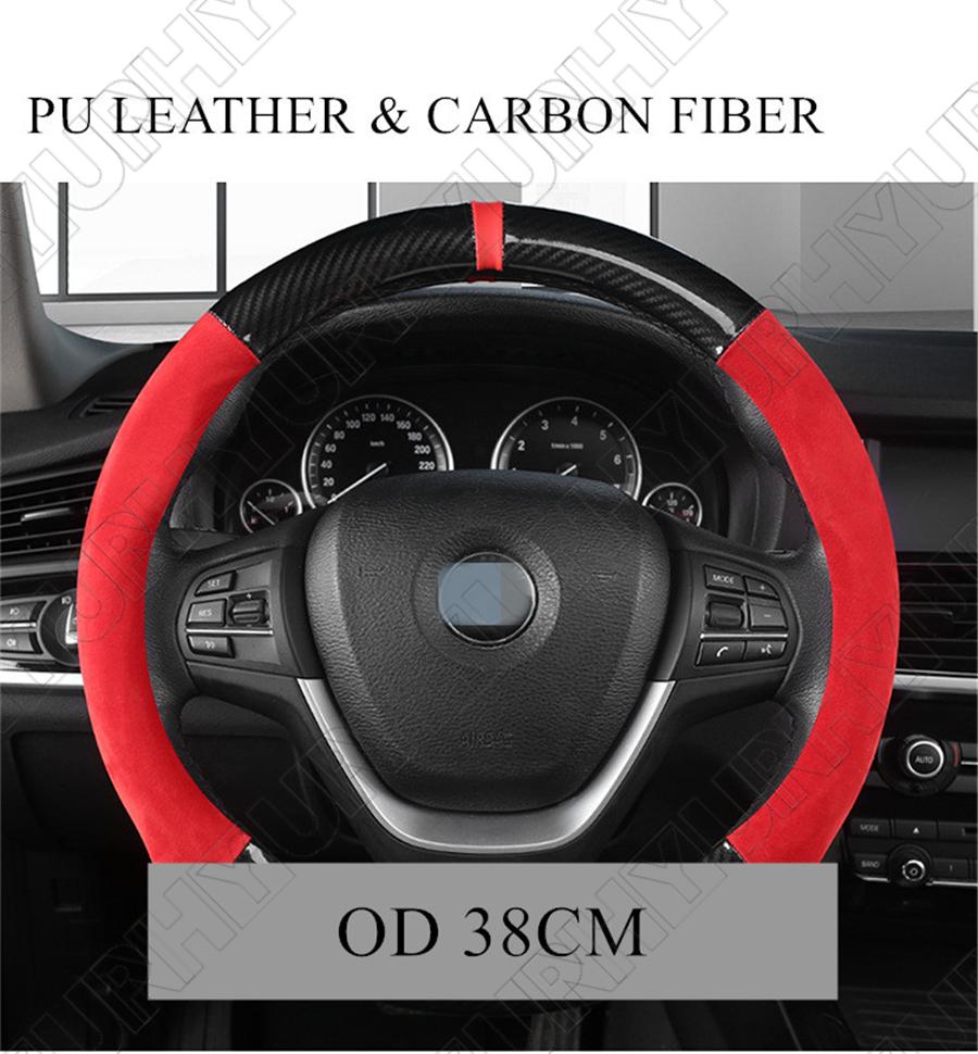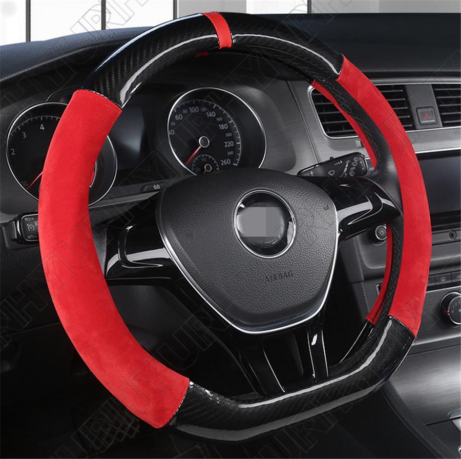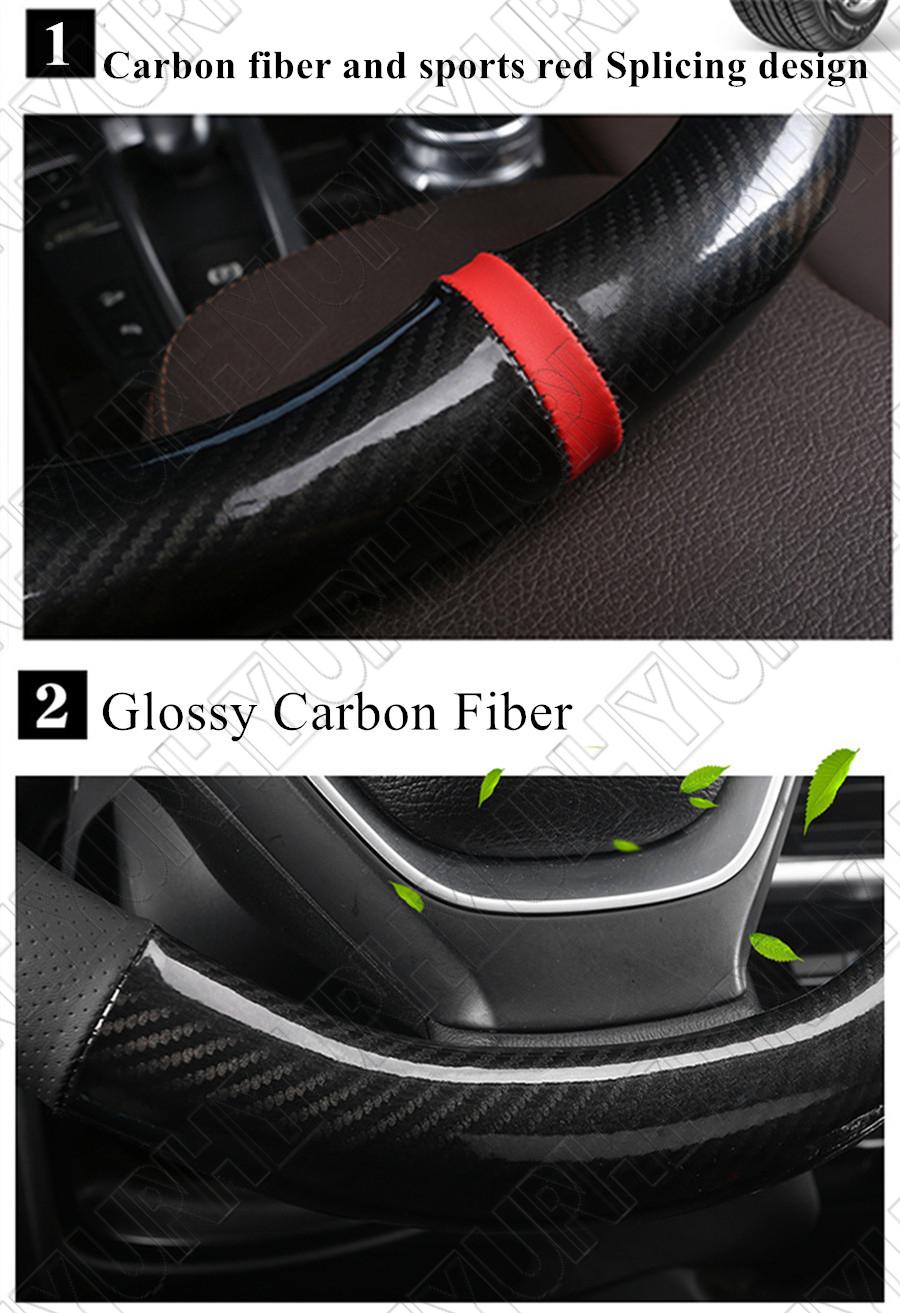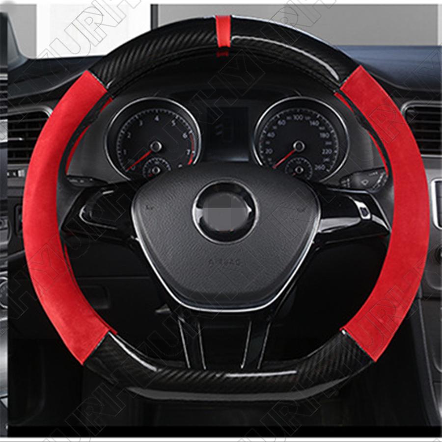 1* Steering Wheel Cover D Shape 38CM Deluxe Red & Glossy Carbin Fiber New