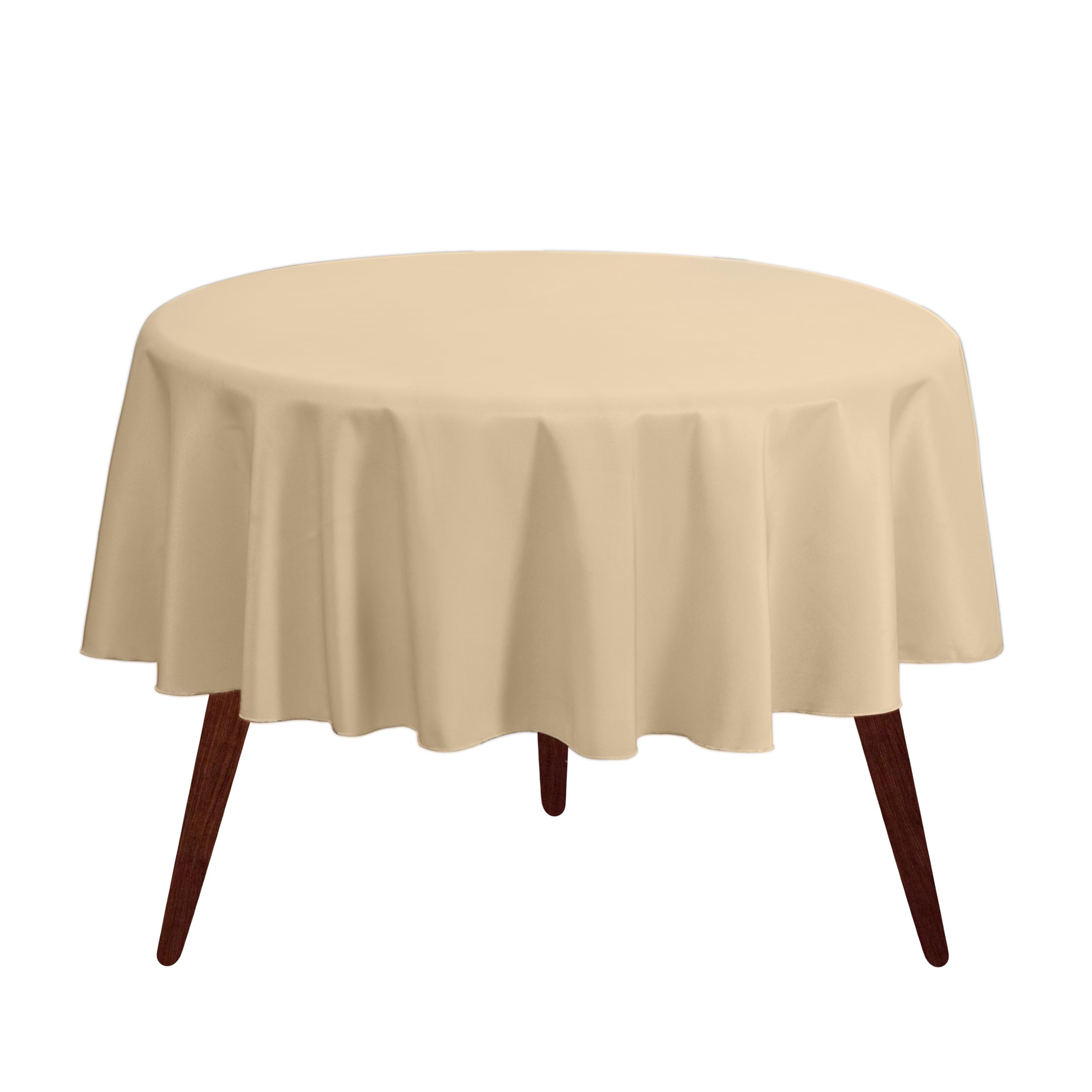 COVER ANY TABLE WITH STYLISH SOPHISTICATION. Bring practical elegance to all your common surfaces with the Polyester Tablecloth by . This 108-inch round cloth provides ample coverage for all your standard round tables, buffet tables, dining room tables, and beyond. Featuring a variety of brilliant colors across the rainbow spectrum, our line of premium tablecloths offers chic, affordable flair for every holiday party or dinner. Enjoy hassle free cleanup with strong, durable, wrinkle and stain-resistant polyester, while a 15” drop helps block spills from damaging your expensive tabletop, chairs and rug. For all your birthday, holiday, wedding, and Sunday dinner get-togethers, depend on for stunning design and fabulous functionality. IDEAL ROUND SHAPE Accommodate the majority of buffet and dining room tables with a perfectly circular cover. Whether indoors or outdoors, dress up your folding tables for a dash of decorative elegance. DURABLE POLYESTER Never worry about ironing or dry cleaning again. Strong fabric material repels liquid, launders in the washing machine, and remains wrinkle-free for many years to come. It’s also classier vinyl. ELEGANT DESIGN One-piece seamless construction brings a crisp, chic look to your wedding buffet, Thanksgiving dinner table, or backyard affair. Carefully hemmed edges flow 15” from the table for added protection. AFFORDABLE & HARD WEARING Don’t waste money on junky disposable tablecloths. These pretty covers are convenient and won’t fade, tear, or pill after repeated use. Use for kids’ parties and other fun, messy functions. COLORFUL VARIETY Choose from classic muted designs in beige, ivory, white, and black, or go bold with a vibrant red, royal blue, purple, and more. specializes in popular wedding shades to match any motif.